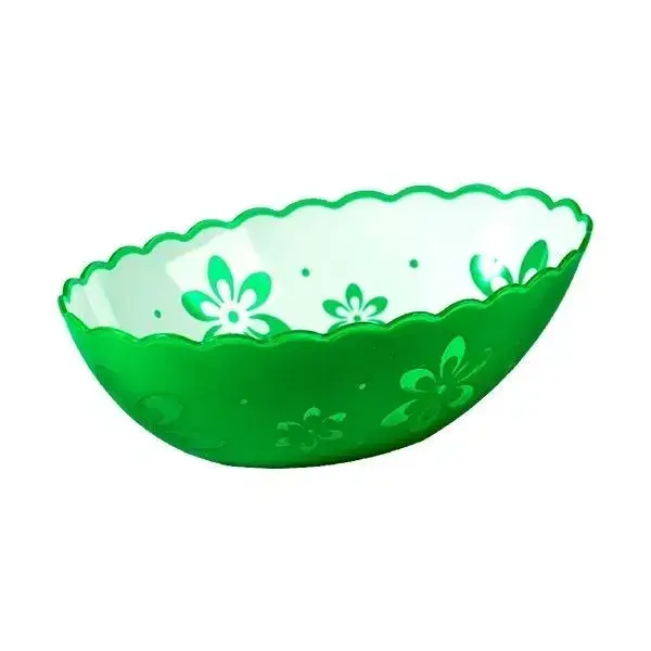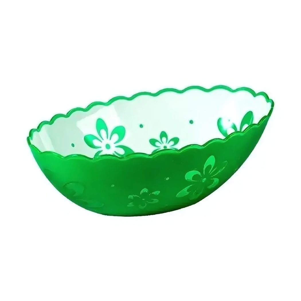 Салатник пластиковый овальный 1,5л с цветочным декором, зелёный, волнистый край