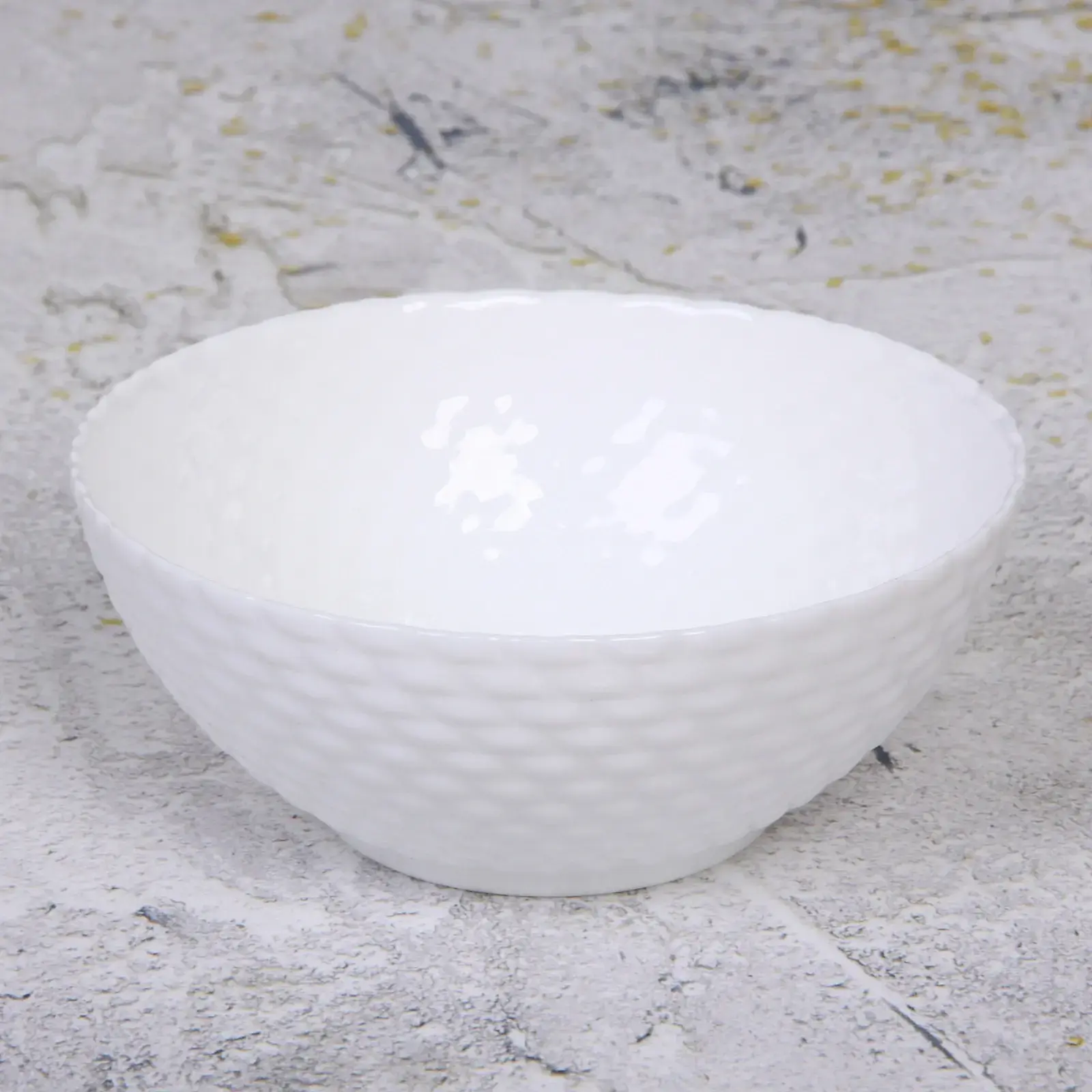 Минималистичная круглая форма с текстурным декором создаёт эффект ручной работы. Белоснежный цвет гармонично впишется в любую сервировку — от повседневного завтрака до праздничного стола.