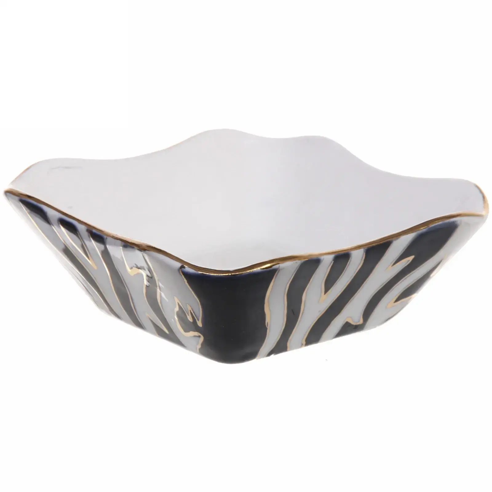 Фарфоровая салатница «Атлас» — это сочетание традиционного узбекского мастерства и современной эстетики. Золотая кайма и контрастный орнамент превратят подачу закусок или десертов в маленький праздник, подчеркивая ваш безупречный вкус.