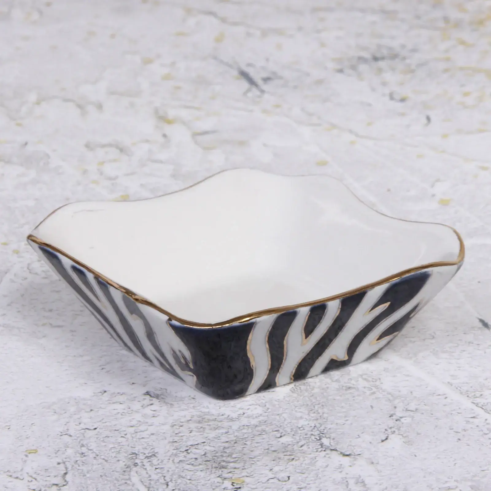 Салатница фарфоровая «Атлас» 150 мл с позолотой, черно-белый дизайн, для изысканной сервировки