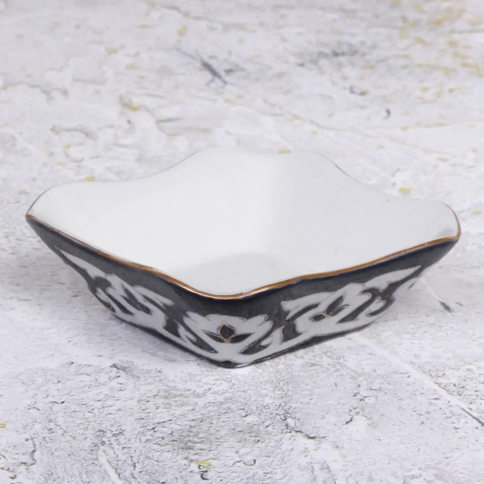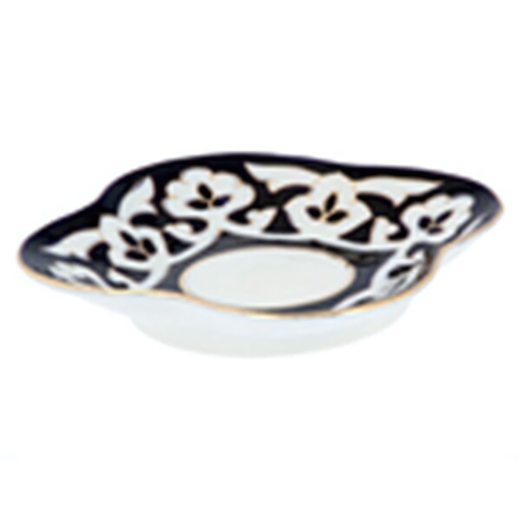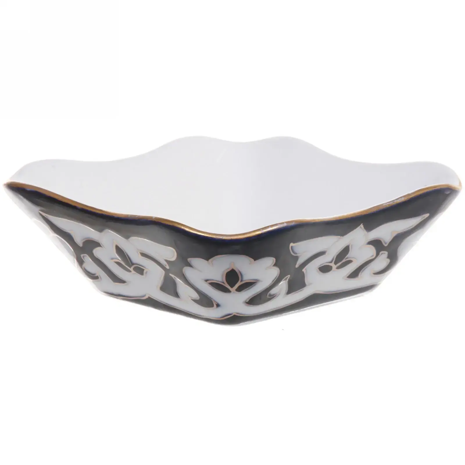 Салатница «Пахта» фарфоровая 150мл, бело-черный цветочный узор с позолотой