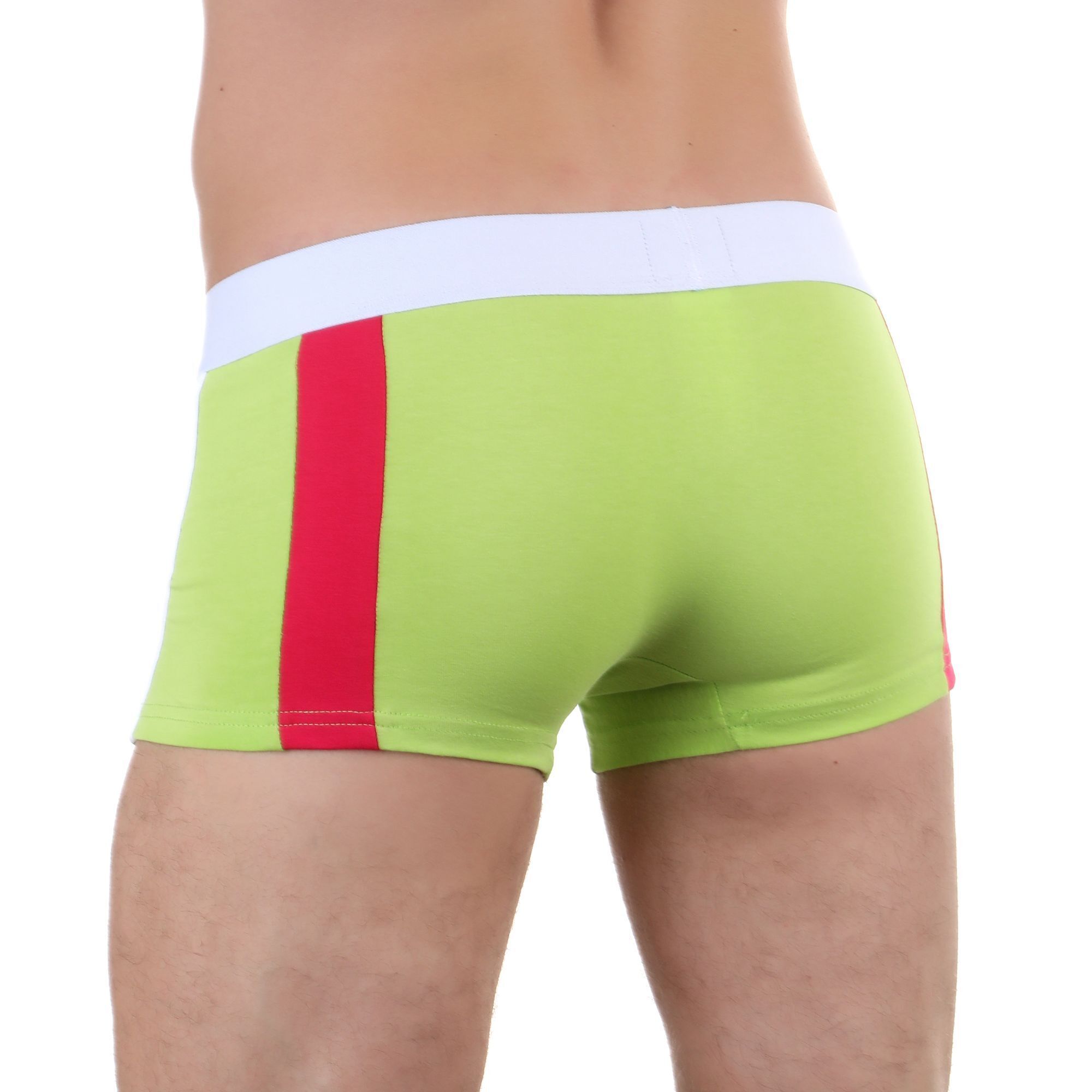 Трусы-боксеры имеют стандартную форму, что делает их универсальными для любого гардероба. Они подходят для мужчин всех возрастов и могут использоваться как в повседневной жизни, так и в спортивных активностях. Яркий салатовый цвет с контрастными розовыми вставками добавляет изюминку в ваш образ, делая его более ярким и запоминающимся.