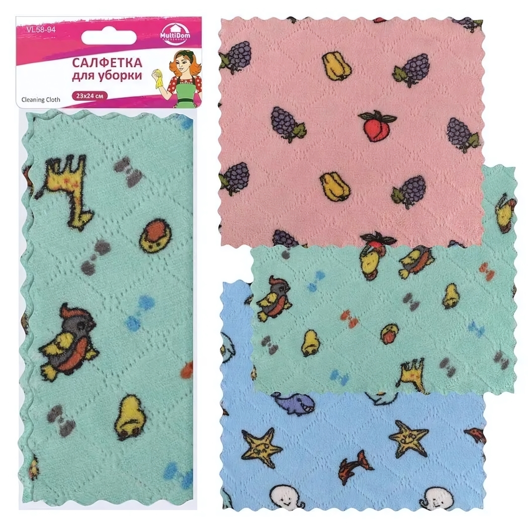 Салфетка для уборки 23*24см, цвета в ассортименте, одноразовая