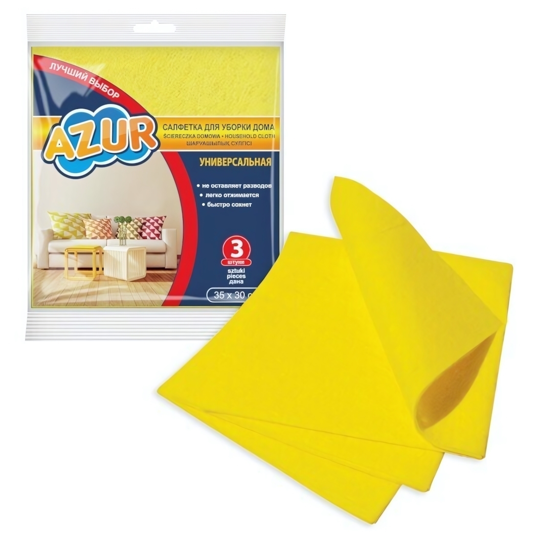 Позаботьтесь о чистоте вашего дома с набором прочных салфеток 'AZUR'. Идеальное решение для ежедневной уборки – они эффективно очищают любые поверхности без разводов и повреждений.