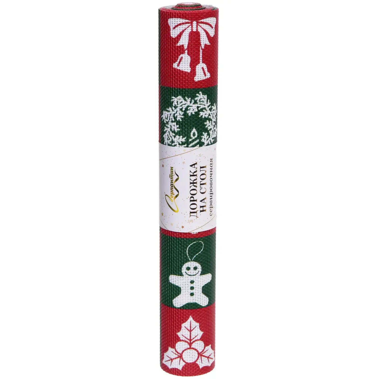 Салфетка-дорожка на стол 30х180см, ПВХ, новогодний принт 'Новогодние радости'