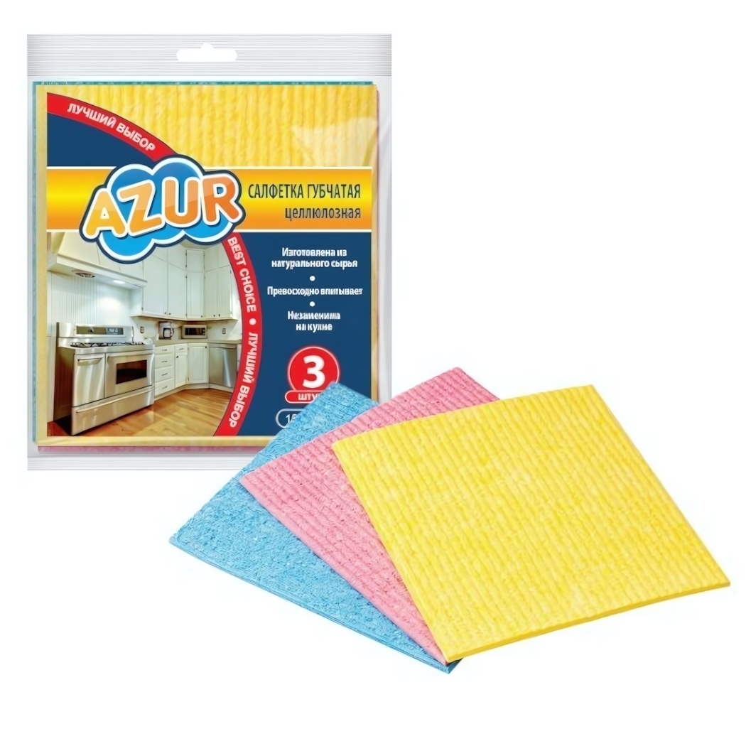 Губчатые салфетки AZUR станут вашими незаменимыми помощниками в уборке. Благодаря оптимальному размеру 15х15 см они удобно лежат в руке и эффективно справляются с любыми загрязнениями.