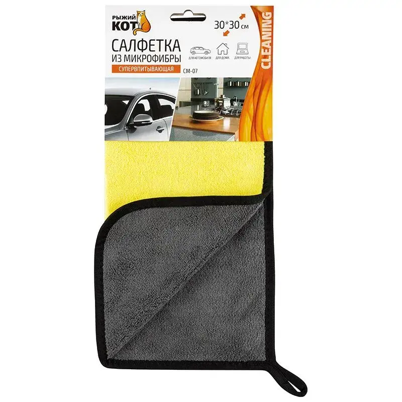 Салфетка из микрофибры "Супервпитывающая" 30х30см, двухсторонняя, цвет желтый/серый