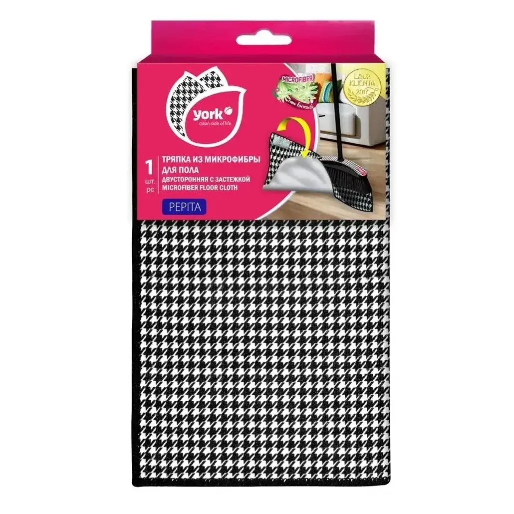 Салфетка микрофибра для пола двухсторонняя «Пепита York» 50см, застёжка, черно-белый узор