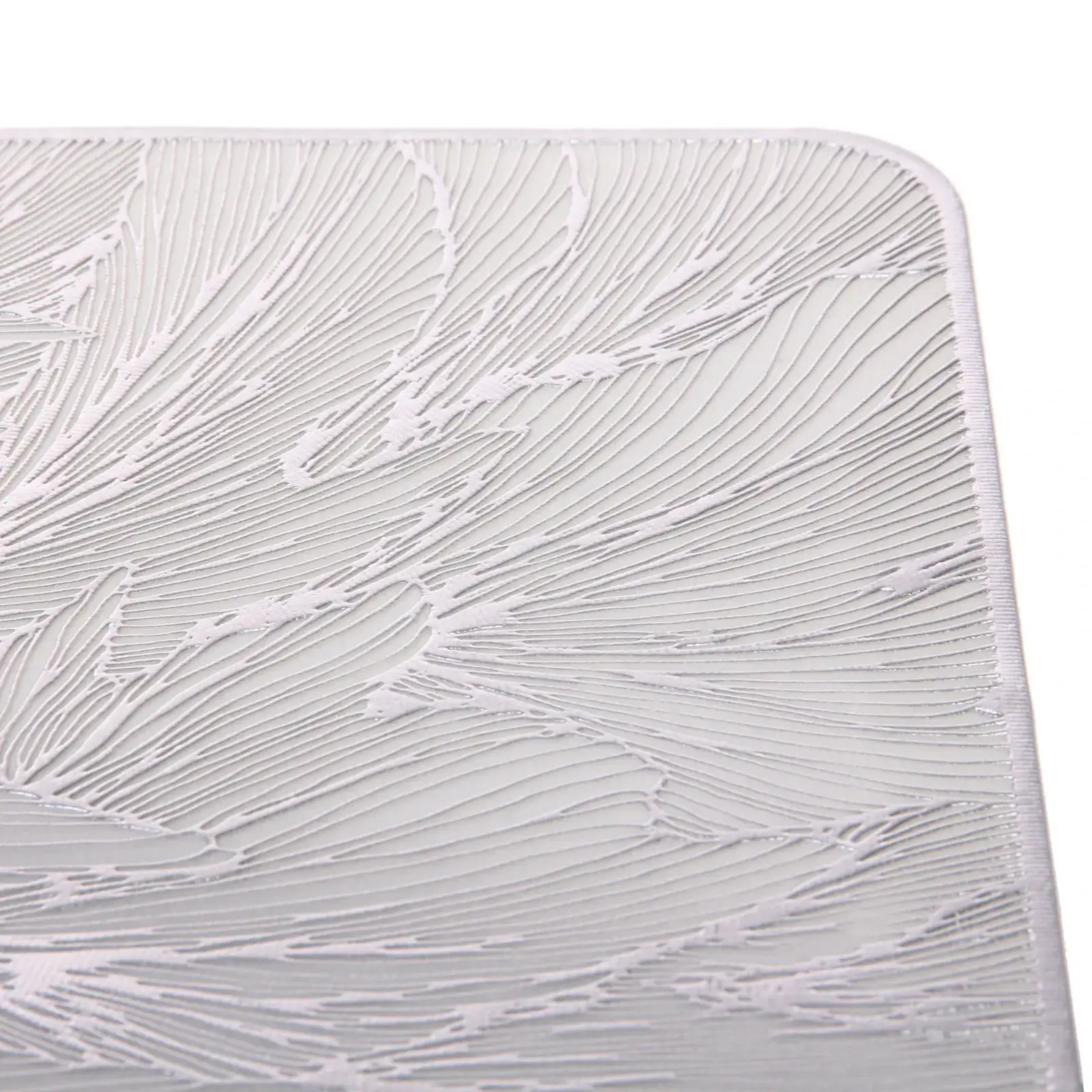 Салфетка под тарелку 30х45см, серебристый ПВХ, рисунок 'Листья'