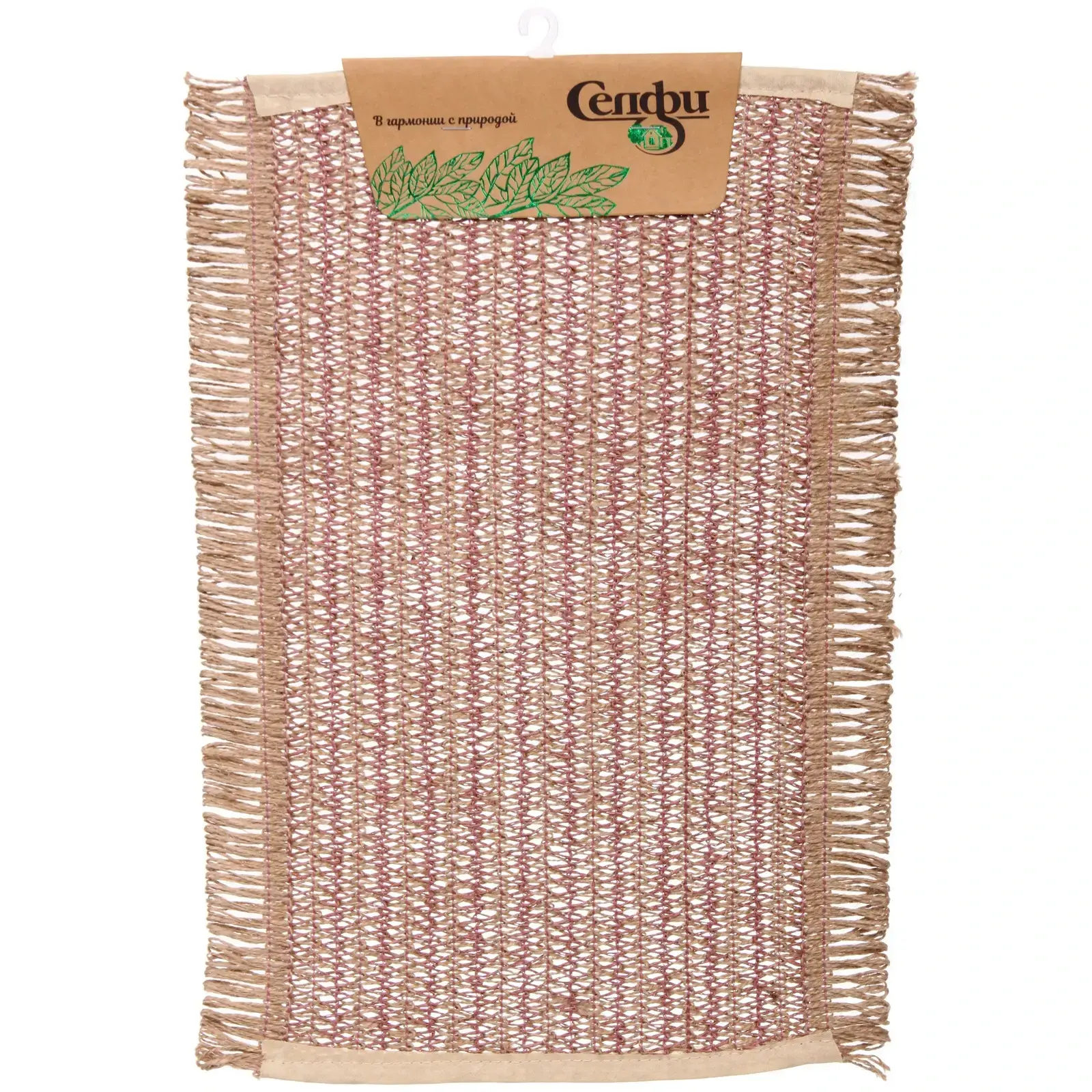 Салфетка имеет прямоугольную форму и выполнена в нежных розовых и бежевых тонах, что позволяет легко сочетать ее с различными стилями интерьера. Кисточки по краям добавляют изюминку и делают изделие более привлекательным. Размер 30х45 см позволяет использовать ее как подставку под тарелки, так и в качестве декоративного элемента.
