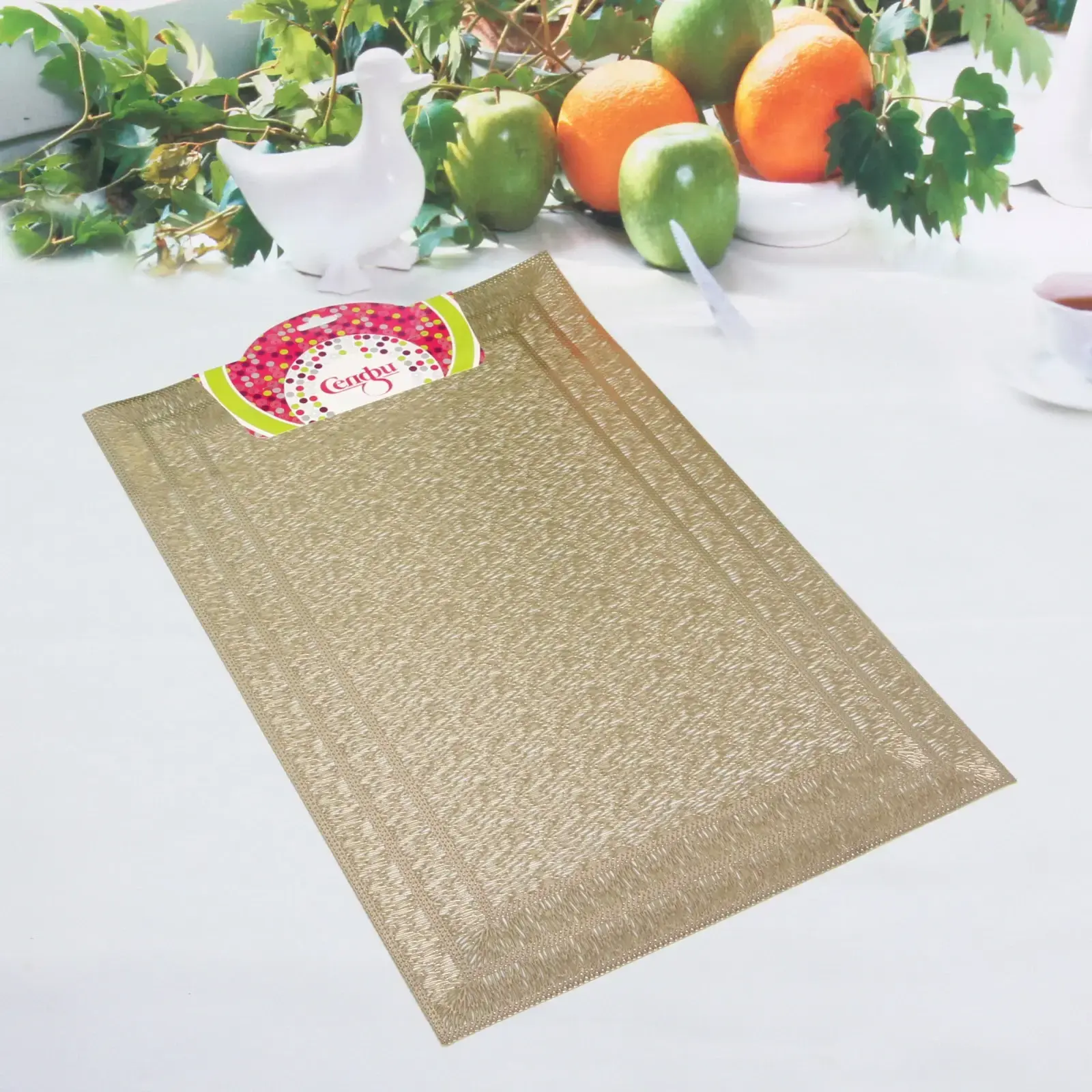 Салфетка имеет прямоугольную форму и золотистый цвет, что делает её универсальным элементом декора. Она отлично сочетается с различными стилями оформления, от классического до современного. Не упустите возможность добавить в ваш дом этот стильный и практичный аксессуар!