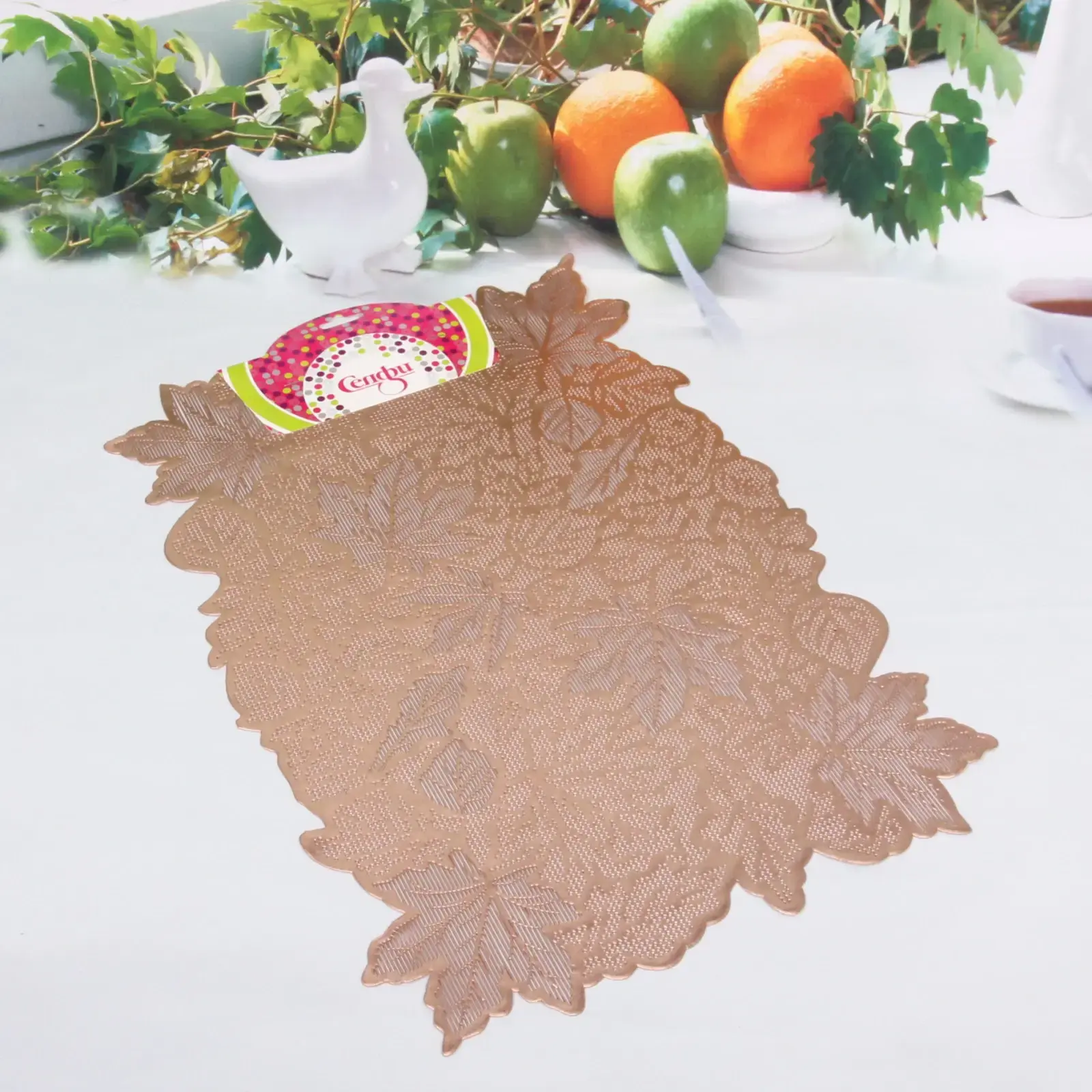 Размер салфетки составляет 30х45 см, что делает её универсальной для большинства столов. Розовое золото придаёт изделию элегантный вид, а узор в виде кленовых листьев добавляет природный шарм. Салфетка идеально подходит для сервировки как повседневного, так и праздничного стола, создавая атмосферу уюта и стиля.