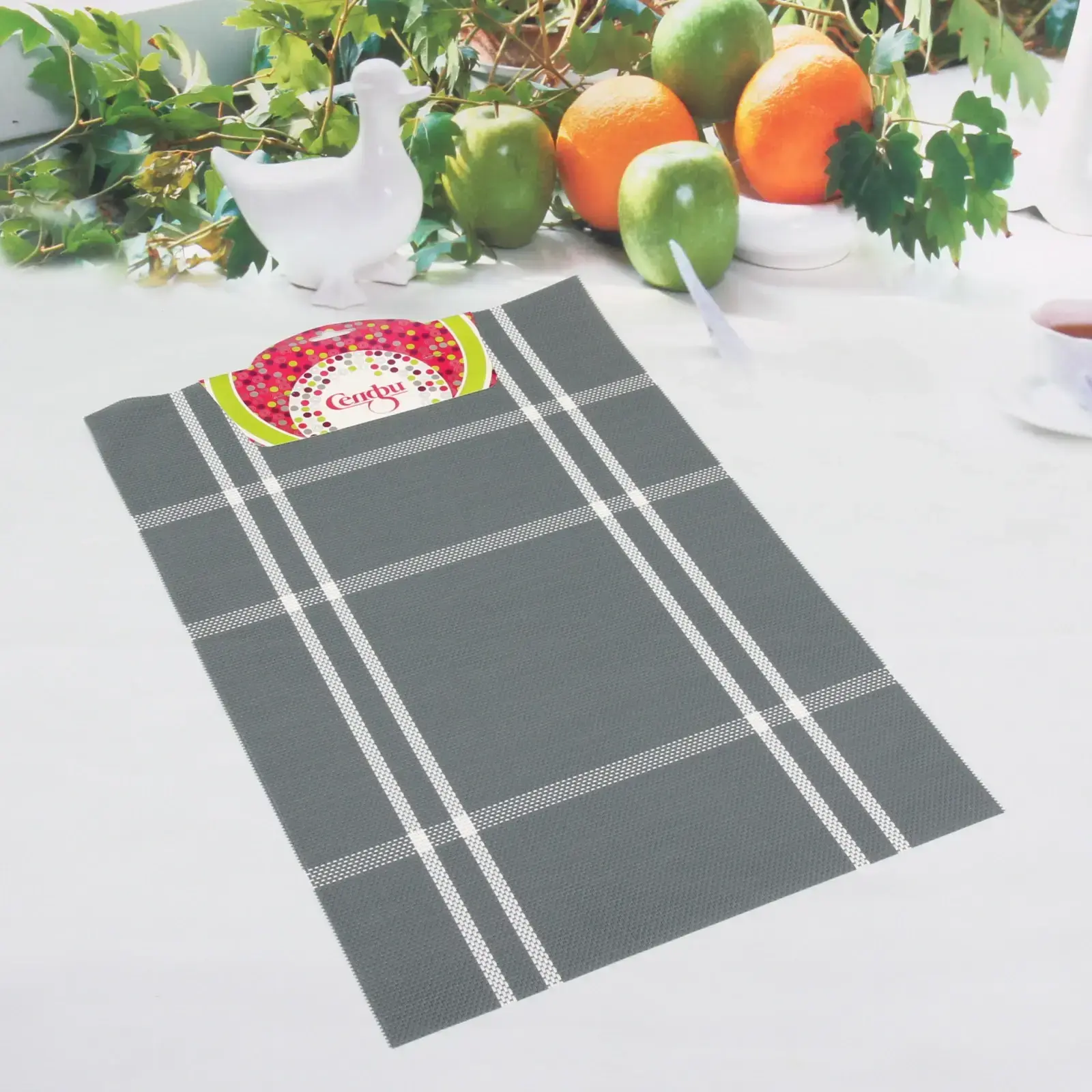 Салфетка изготовлена из качественного ПВХ, что обеспечивает её прочность и устойчивость к загрязнениям. Серый цвет с белыми клетками добавляет изысканности и гармонии в ваш интерьер. Размер 30х45 см делает её универсальной для различных столов и мероприятий.