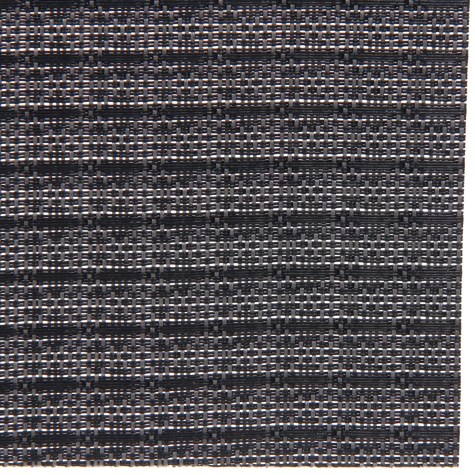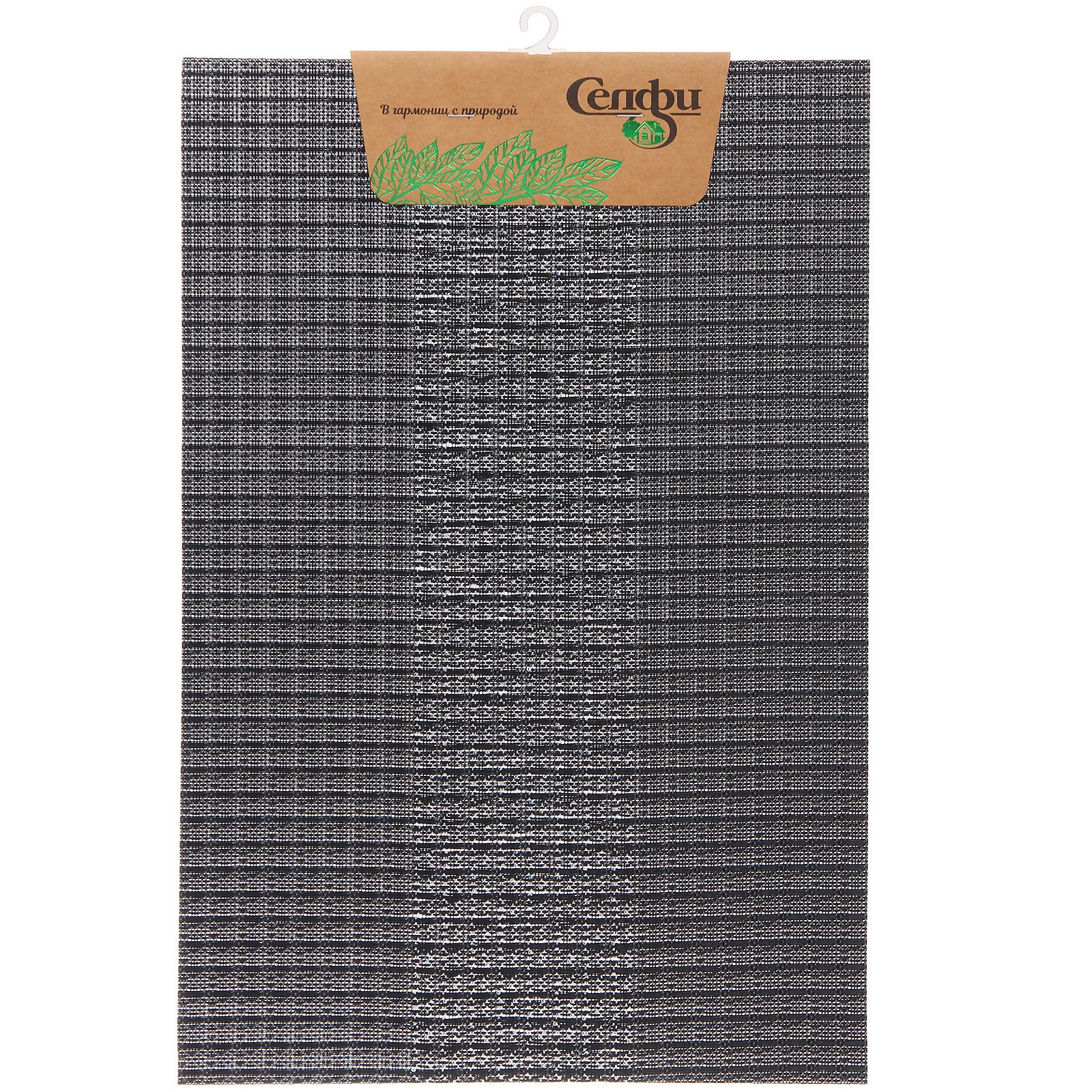 Салфетка имеет прямоугольную форму и стандартный размер 30x45 см. Её толщина и структура плетения обеспечивают хорошую амортизацию для посуды. Материал — ПВХ — устойчив к влаге и прост в уходе. Цвет — графит — представляет собой насыщенный темно-серый оттенок с контрастным переплетением нитей, что создает эффектную визуальную текстуру.
