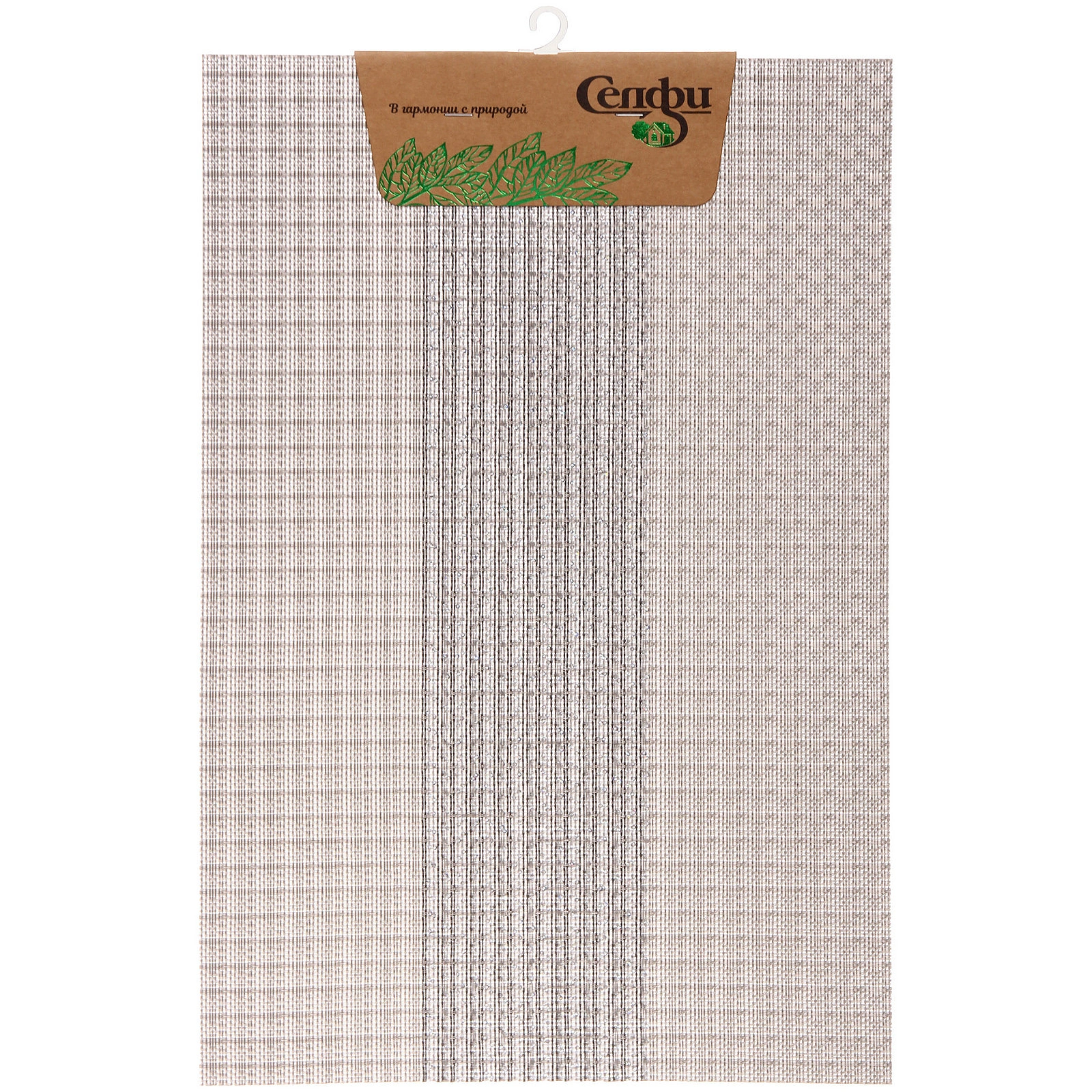 Салфетка имеет прямоугольную форму размером 30х45 см. Материал изготовления – ПВХ, что обеспечивает долговечность использования, устойчивость к влаге и простоту в уходе. Плетеная структура создает приятную тактильную поверхность и обеспечивает хорошую воздухопроницаемость.