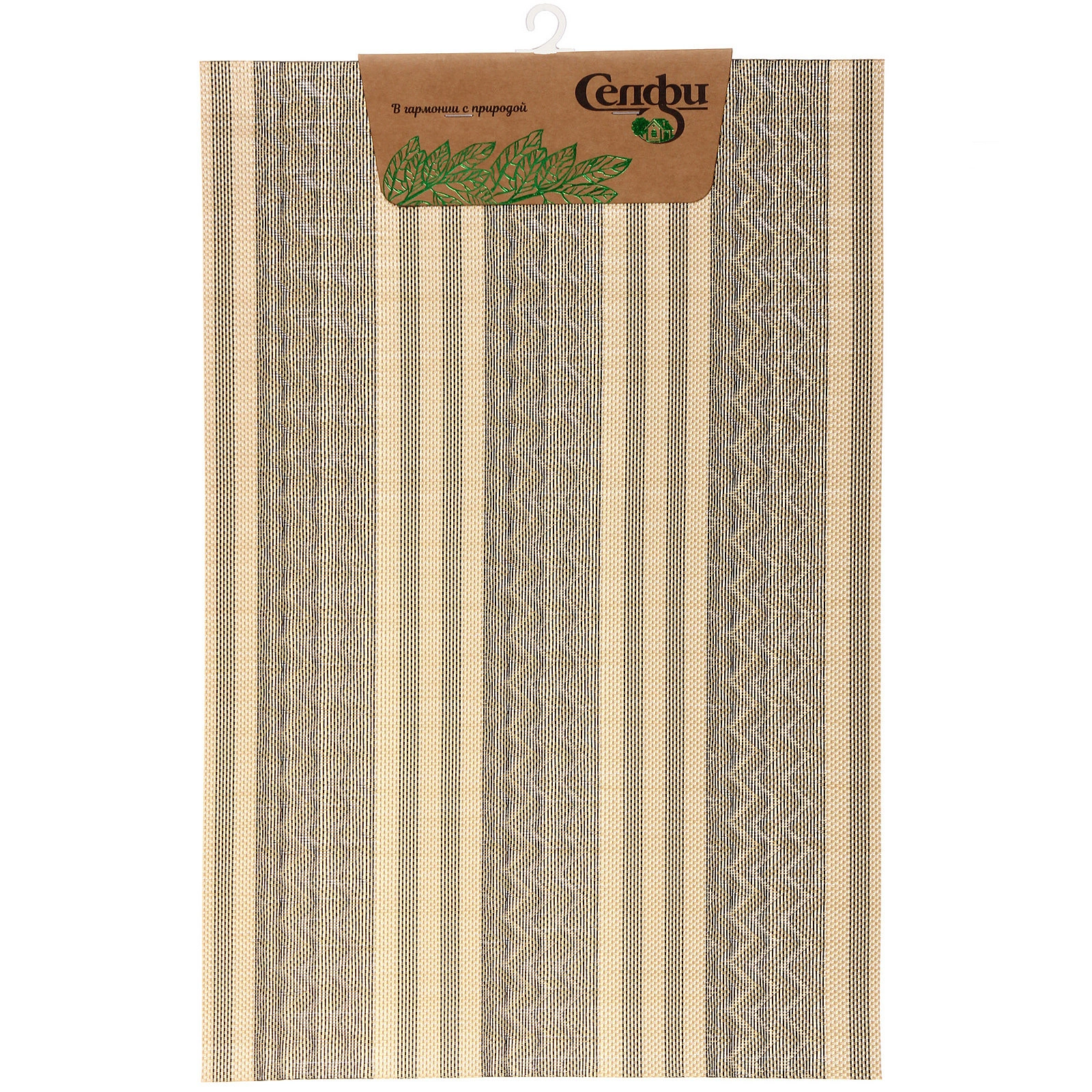 Салфетка имеет прямоугольную форму и стандартный размер 30х45 сантиметров, что делает ее удобной для большинства столов. Цвет — классический коричневый, который отлично сочетается с деревянными, стеклянными и керамическими поверхностями. Плетеная структура не только выглядит привлекательно, но и обеспечивает небольшую амортизацию для посуды.