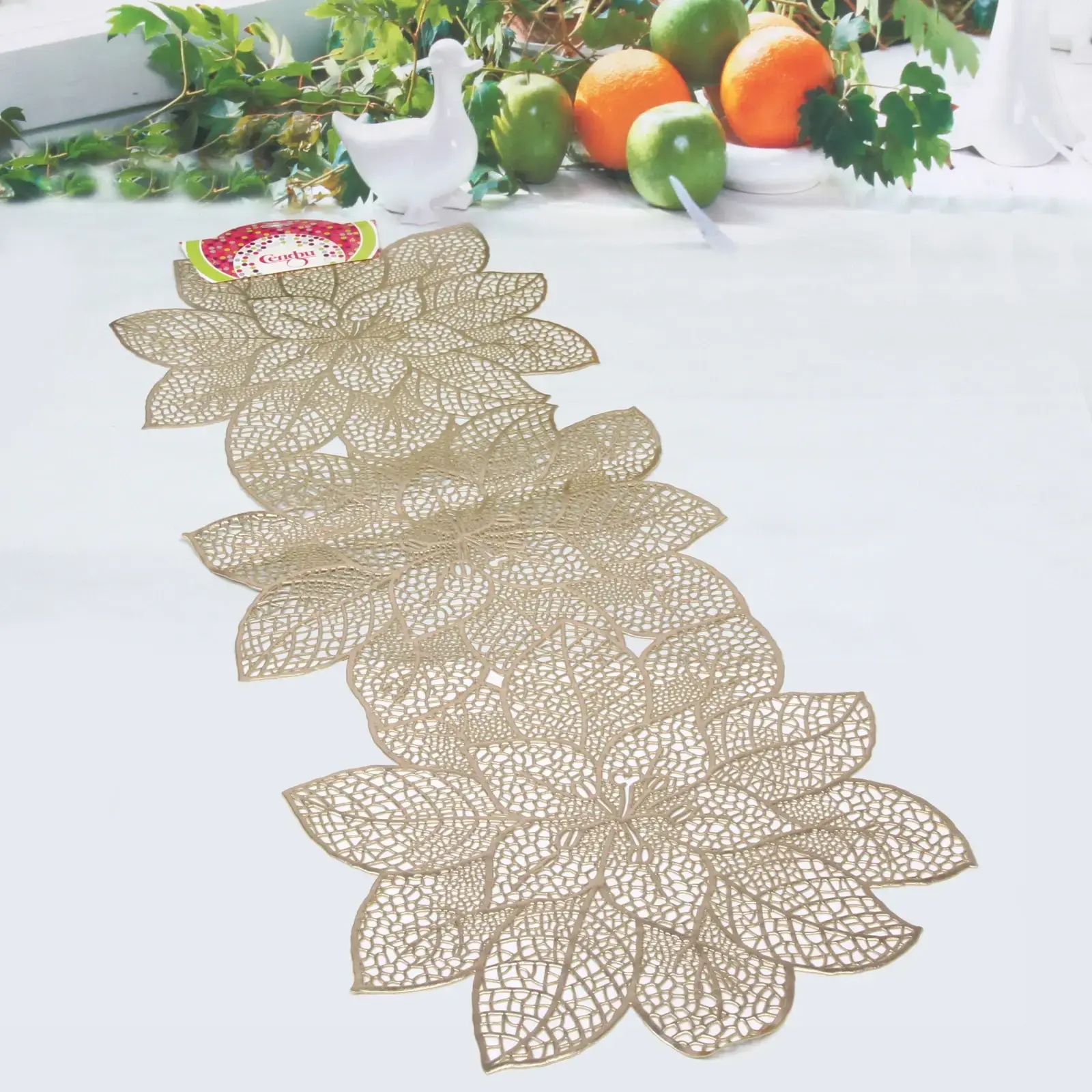 Создайте атмосферу уюта и стиля с помощью нашей салфетки на стол размером 34х90 см. Изготовленная из качественного ПВХ, она не только украсит ваш стол, но и защитит его от загрязнений. Золотистый цвет и ажурный узор придадут вашему интерьеру изысканность и элегантность.