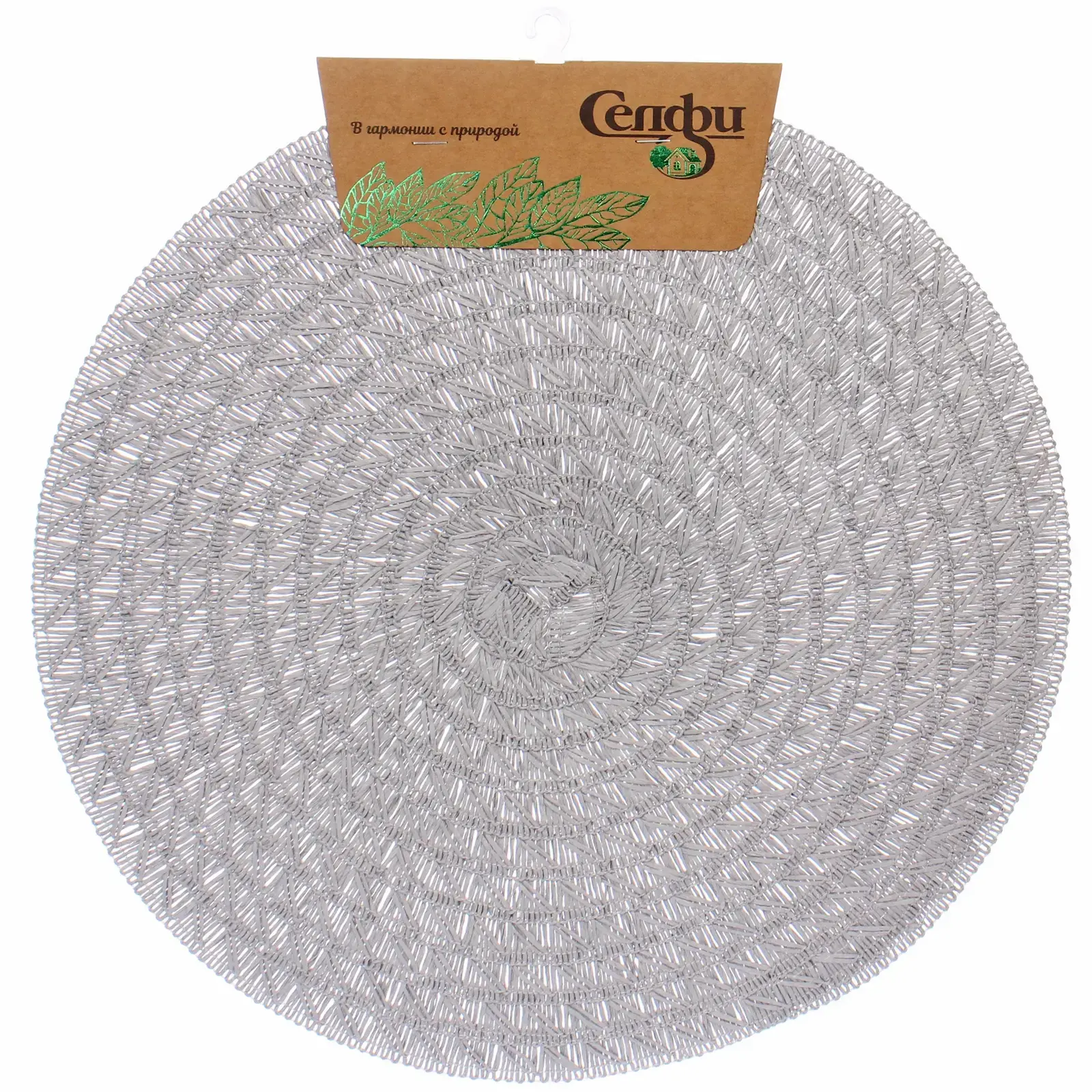 Салфетка на стол «Бохо» 38см, круглая, джут с пвх, серая, защита от царапин и нагрева