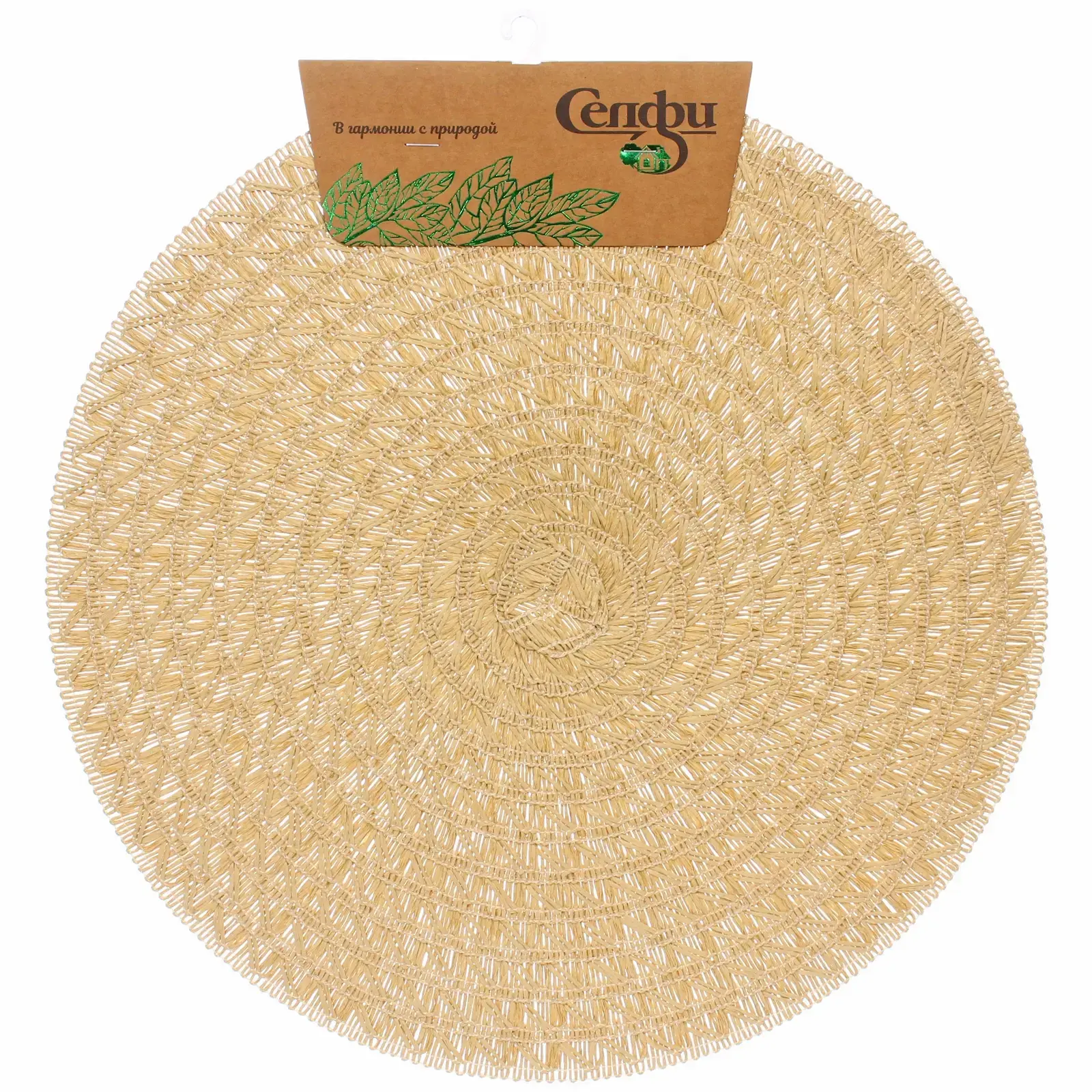 Салфетка имеет стандартный размер 38 см в диаметре, что делает её подходящей для большинства столов. Цвет светло-бежевый, что позволяет легко сочетать её с другими элементами сервировки. Благодаря спиральному плетению, она выглядит стильно и современно, подчеркивая вашу индивидуальность.