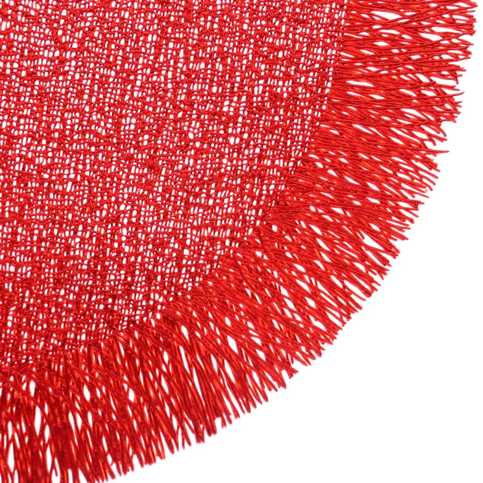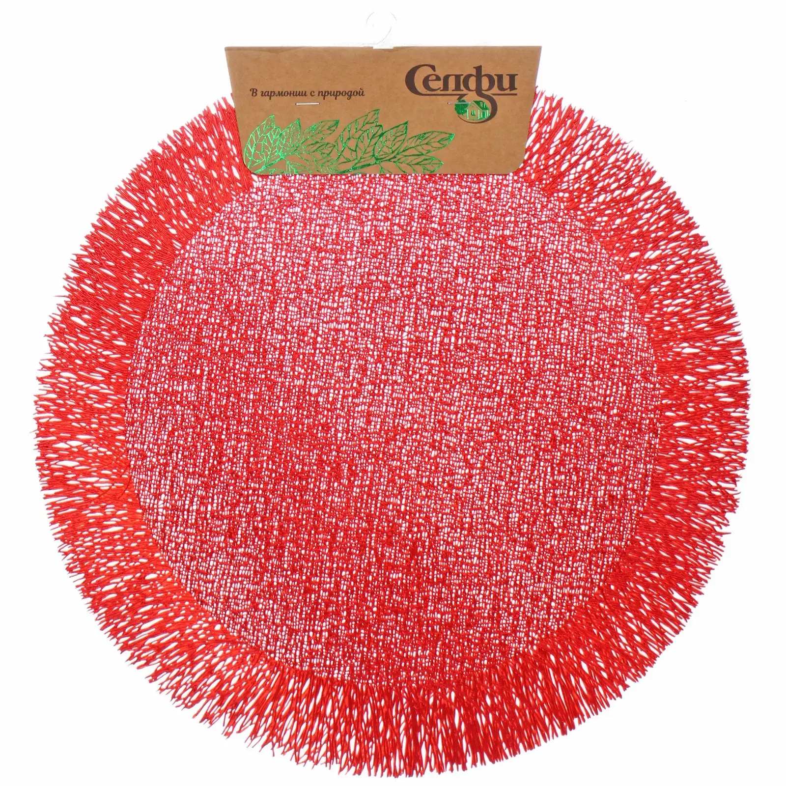 Круглая форма с ровными краями обеспечивает аккуратное размещение на поверхности. Текстурированное плетение из синтетических нитей предотвращает скольжение посуды. Яркий красный оттенок устойчив к выцветанию даже при регулярном воздействии солнечного света.