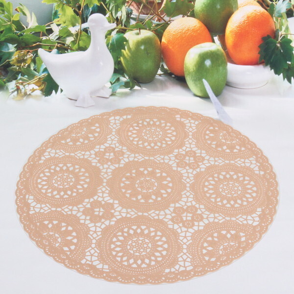 Создайте атмосферу уюта и стиля с помощью нашей салфетки на стол диаметром 38 см. Эта кремовая салфетка, выполненная из качественного ПВХ, станет идеальным дополнением для вашего стола, придавая ему изысканный вид. Благодаря своему кружевному дизайну, она не только защищает поверхность стола, но и служит стильным элементом декора.