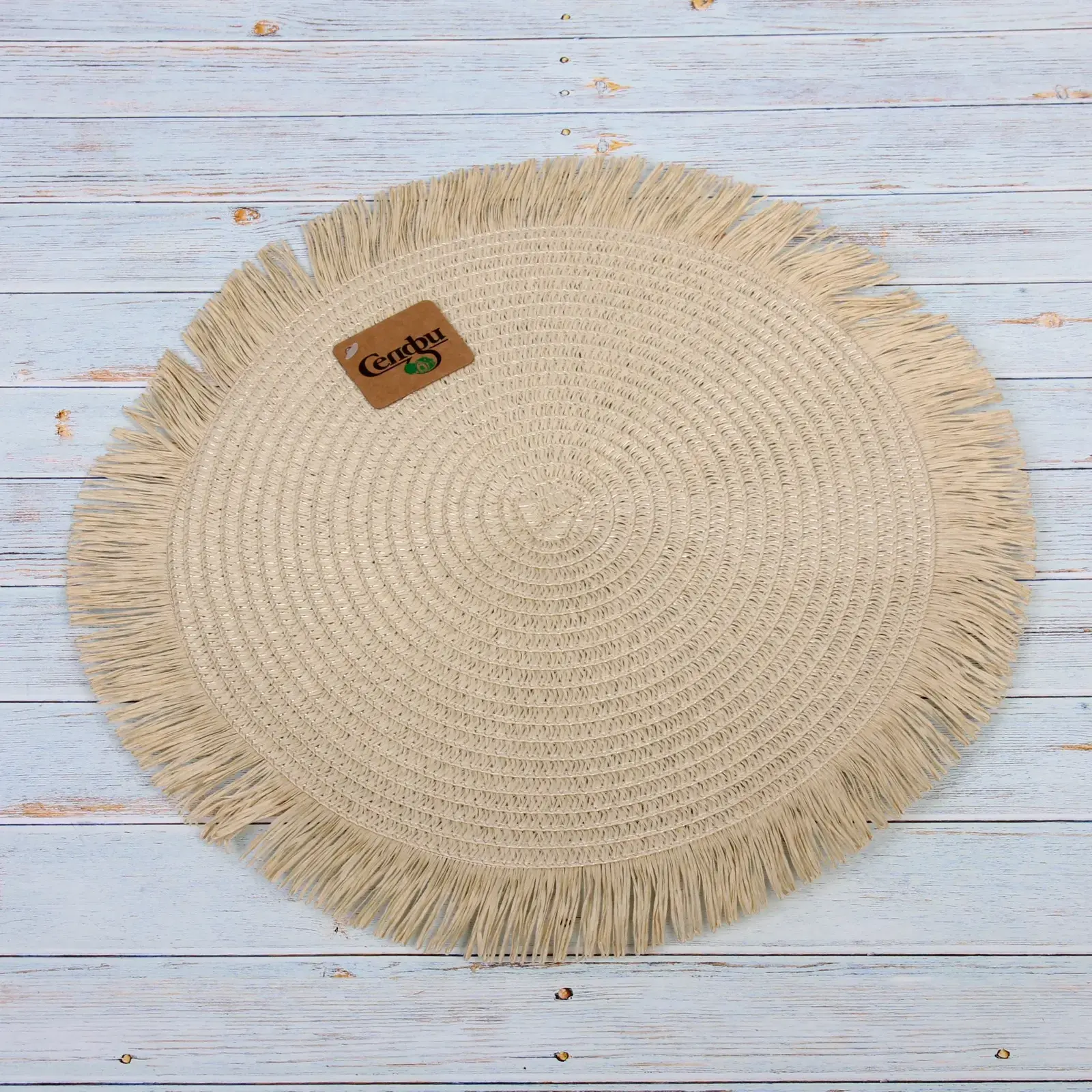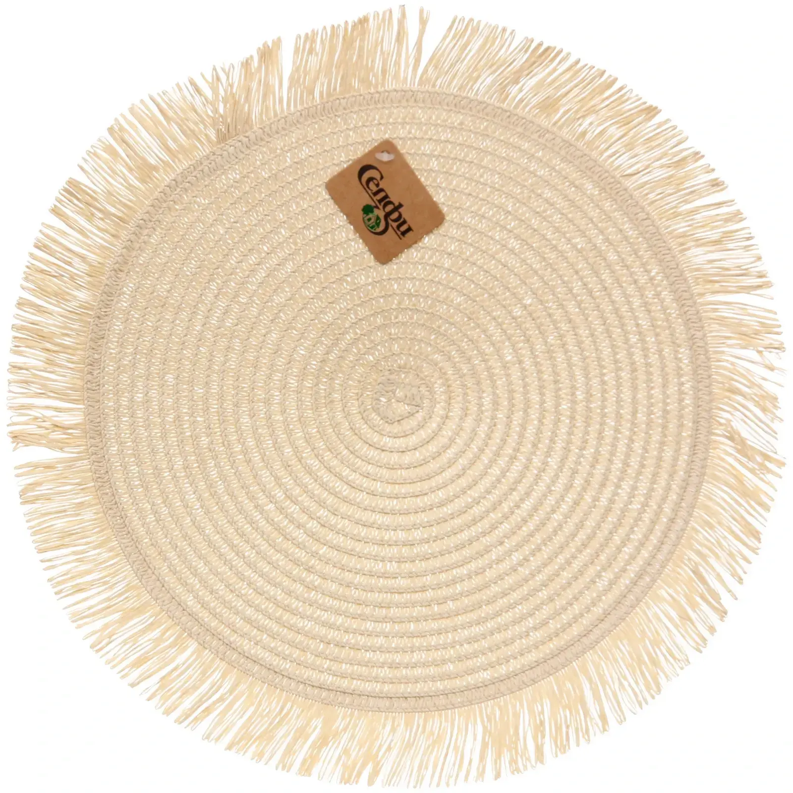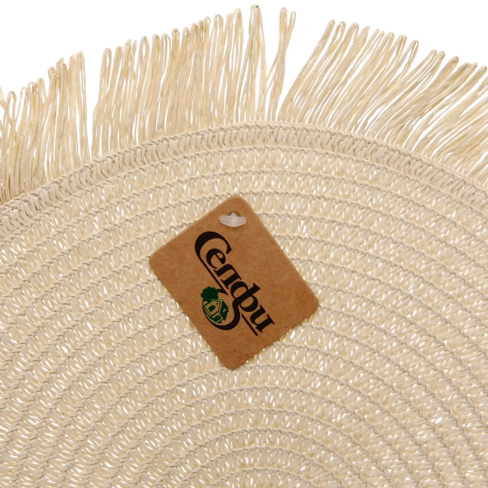 Салфетка имеет диаметр 38 см и выполнена в нежном бежевом цвете, что позволяет ей гармонично вписаться в любой интерьер — от классического до современного. Она отлично подходит для использования как в домашних условиях, так и в кафе или ресторанах. Благодаря своей круглой форме и стильному плетению, салфетка станет акцентом на вашем столе, добавляя ему изысканности и уюта.