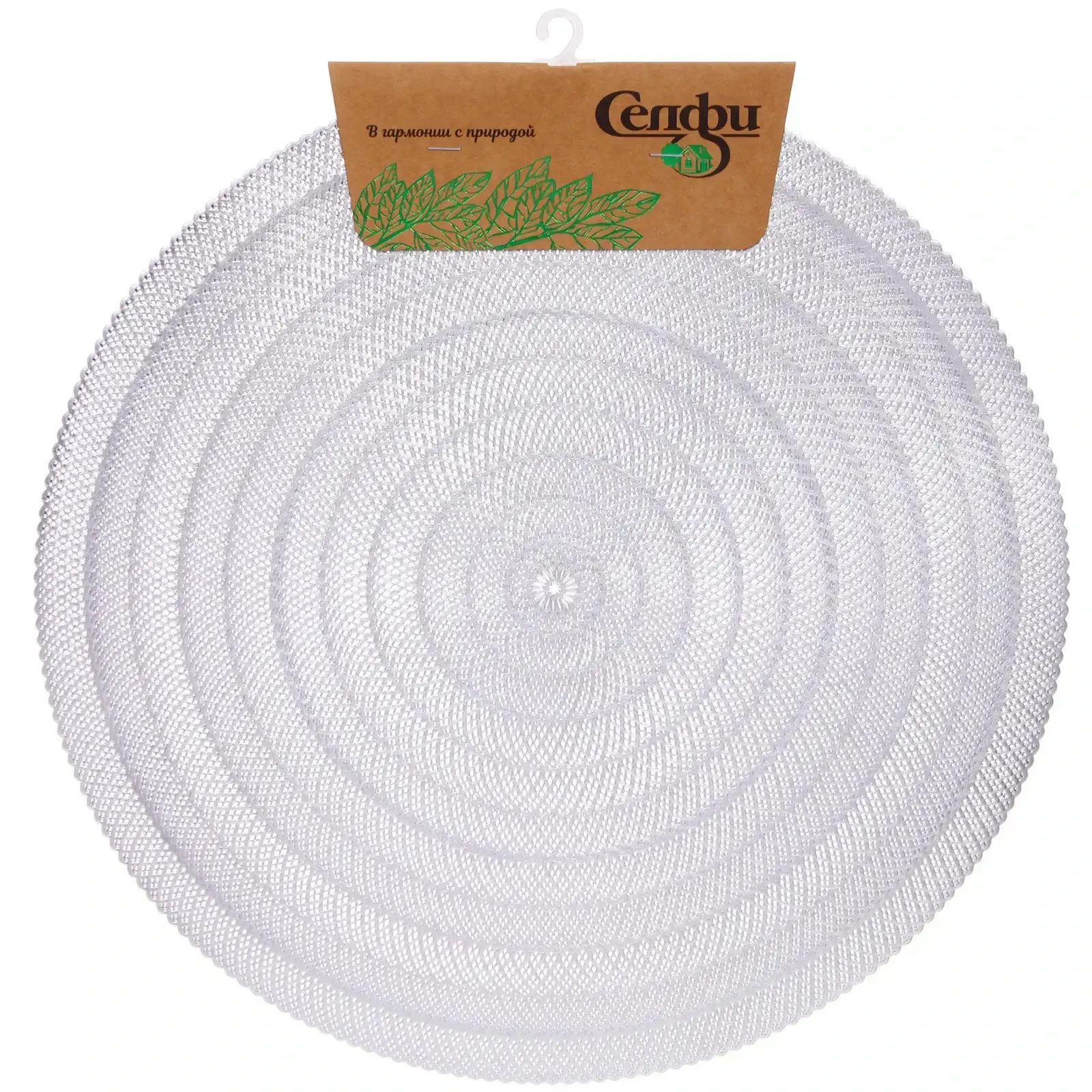 Размер салфетки составляет 38 см в диаметре, что делает ее универсальной для большинства столов. Цвет серебро добавляет современный акцент, а плетеная структура создает интересный визуальный эффект. Салфетка легкая и удобная в использовании, что делает ее идеальным выбором для любого дома.