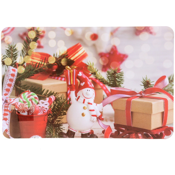 Салфетка изготовлена из качественного пластика, что делает ее устойчивой к повреждениям и легко очищаемой. Размер 41х26 см позволяет использовать ее на различных столах, а яркий дизайн с снеговиком и подарками добавляет веселья в ваш праздник. Не упустите возможность сделать ваш новогодний стол по-настоящему особенным!