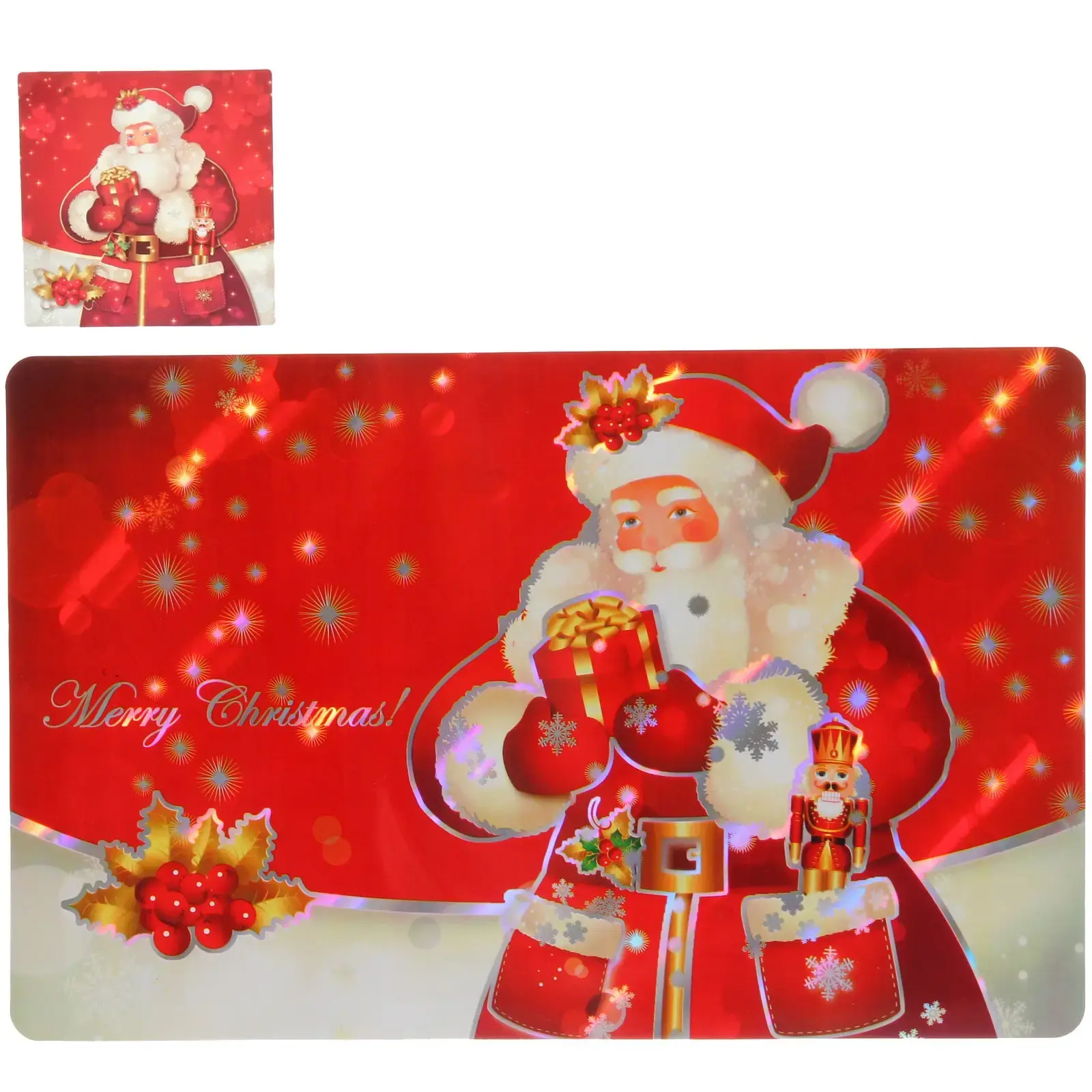 Создайте атмосферу волшебства и уюта на вашем новогоднем столе с помощью этой яркой салфетки. Салфетка с изображением Деда Мороза, который держит подарки, станет не только практичным, но и стильным элементом сервировки. Она идеально подходит для праздничных застолий, создавая настроение и подчеркивая важность момента.