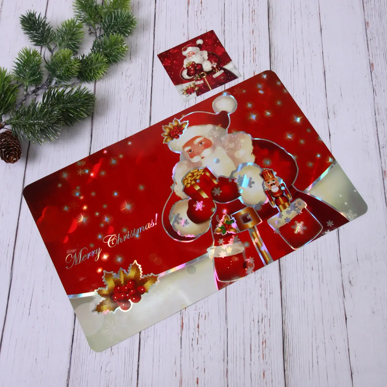 Салфетка выполнена из качественного пластика, что обеспечивает ее долговечность и легкость в уходе. Она устойчива к загрязнениям и легко очищается, что позволяет вам наслаждаться праздником без лишних забот. Яркие цвета и праздничный дизайн делают ее идеальным выбором для создания новогоднего настроения.