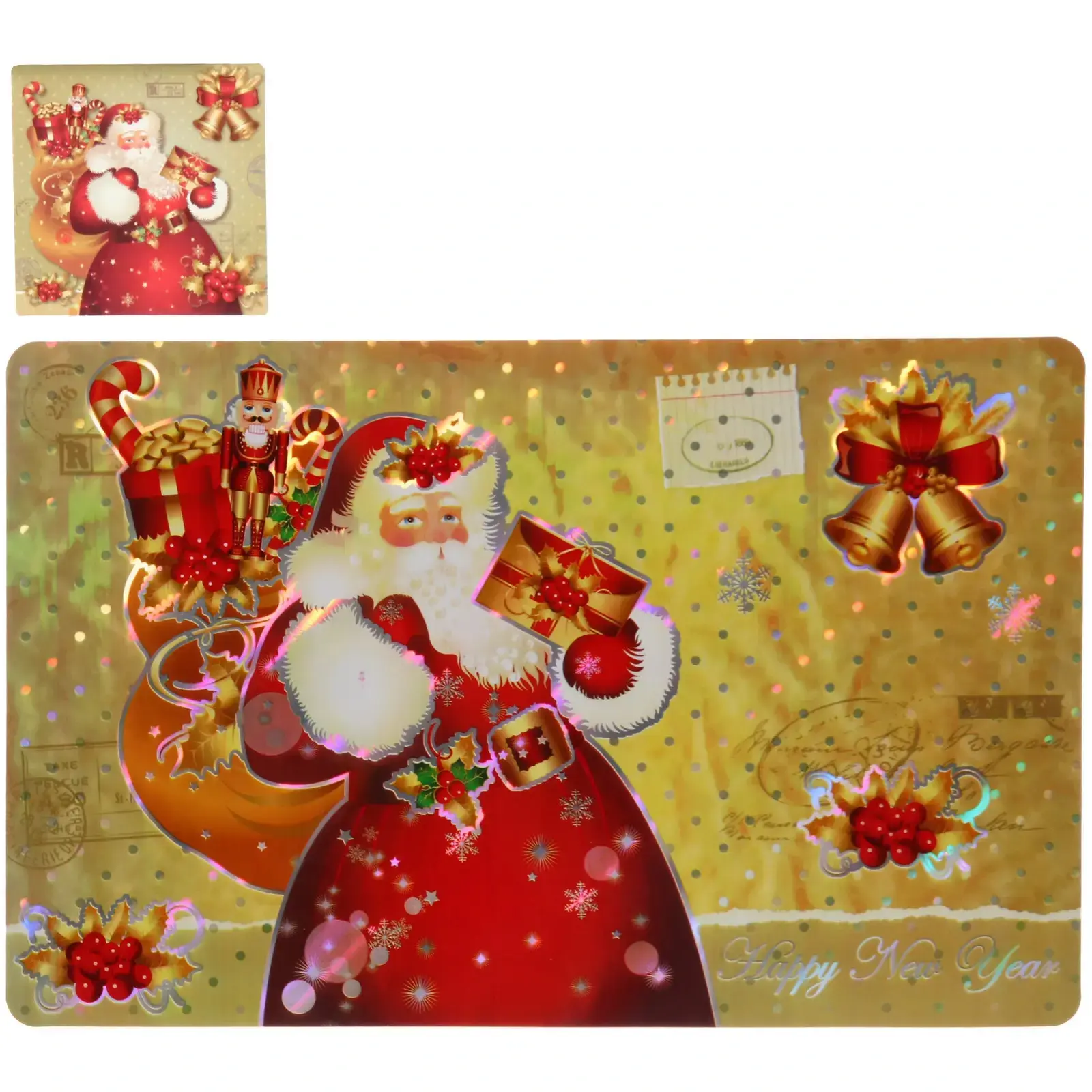 Салфетки выполнены из качественного пластика, что делает их устойчивыми к загрязнениям и легкими в использовании. Размер каждой салфетки составляет 41х26 см, что позволяет удобно размещать их на столе. Набор включает 12 штук, что достаточно для большой компании. Праздничный дизайн с Дедушкой Морозом и золотым фоном создаст атмосферу волшебства и радости в вашем доме.
