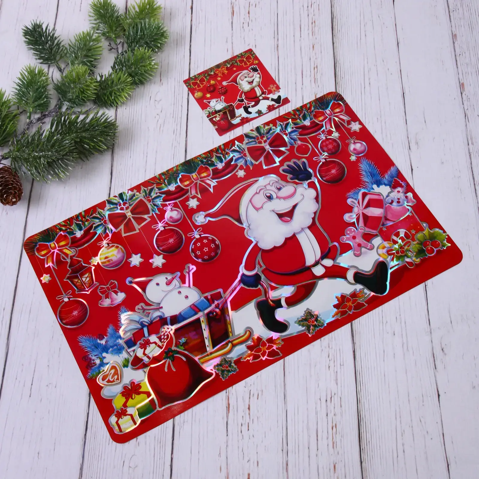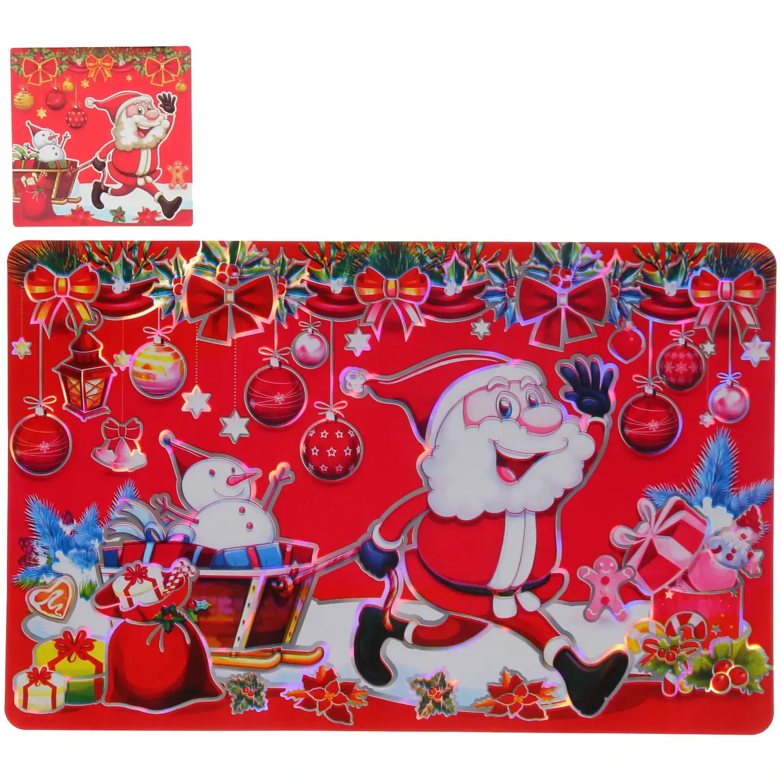 Салфетки выполнены из качественного пластика, что делает их устойчивыми к влаге и легкими в использовании. Они имеют яркий красный фон с изображением Деда Мороза, подарков и новогодних украшений, что создает атмосферу праздника. Размер каждой салфетки составляет 41х26 см, что делает их универсальными для различных блюд и закусок.