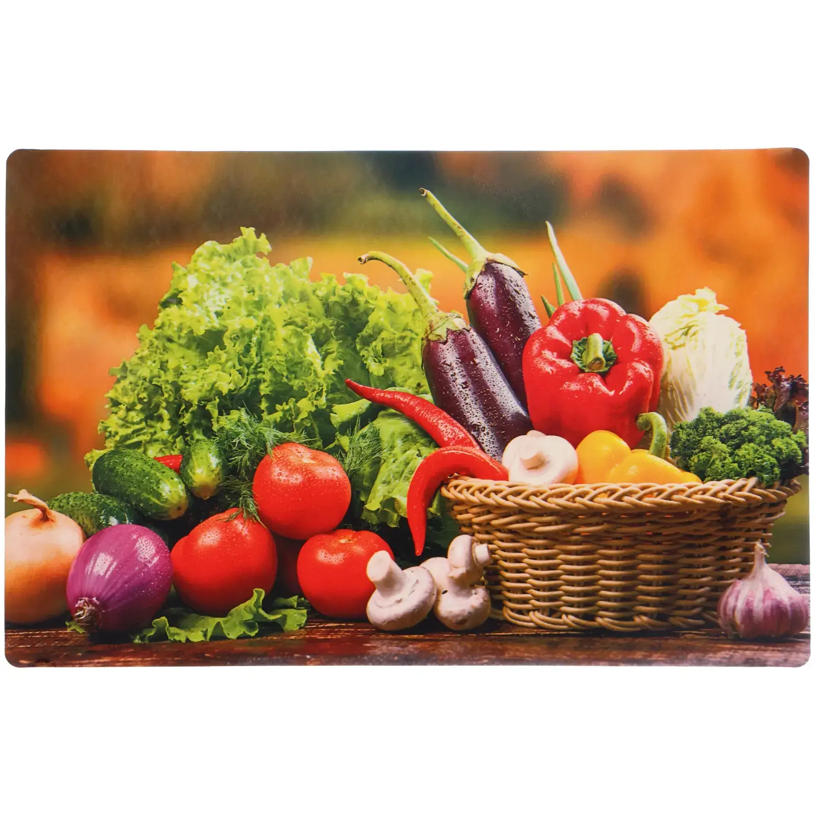 Четыре салфетки в наборе позволяют одновременно сервировать несколько зон: основное блюдо, закуски, хлебную тарелку и напитки. Рельефная текстура материала предотвращает скольжение посуды, а оригинальный дизайн с овощной композицией создает атмосферу свежести и натуральности.