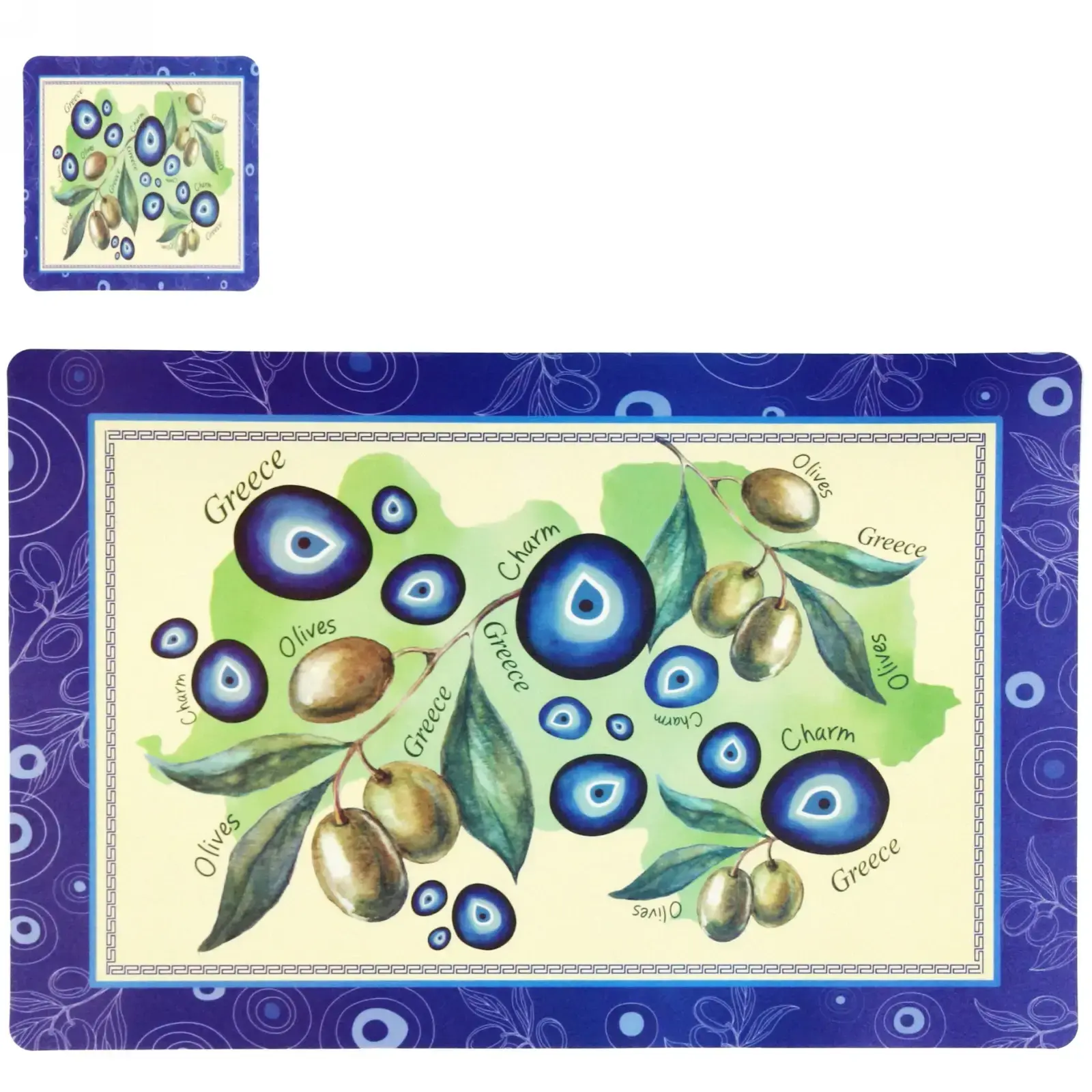 Набор включает 6 салфеток с классическим оливковым орнаментом и 6 штук с декоративными элементами в виде древнегреческих амулетов. Узорчатое обрамление по краям маскирует мелкие загрязнения и создает законченный вид сервировки. Не рекомендуется использовать как подставку под посуду температурой выше 100°C.