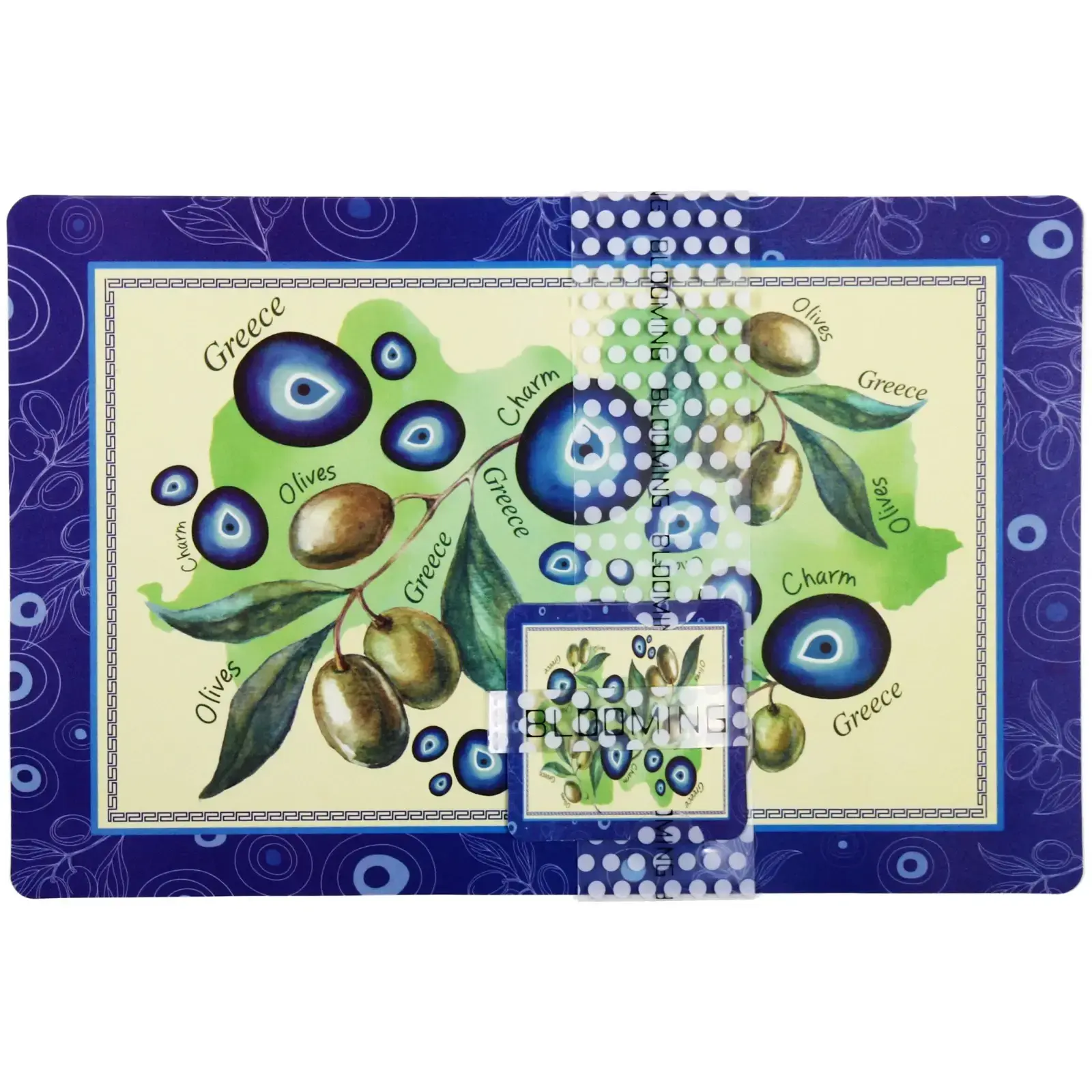 - Четкая печать с оливковыми ветвями и традиционными греческими узорами