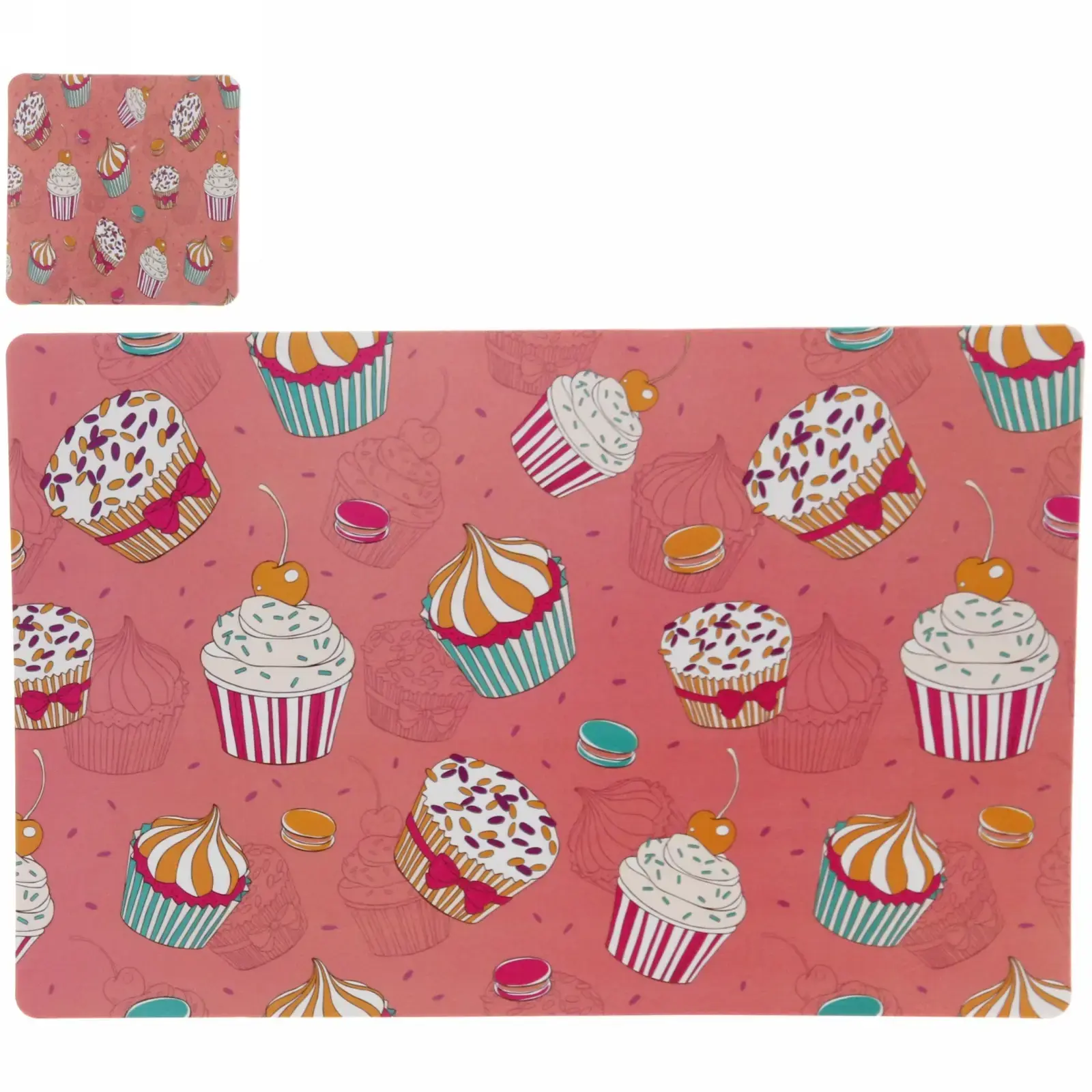 Салфетка на стол 43x28см, набор 12шт «Пирожное», ПВХ, водо-грязеотталкивающие