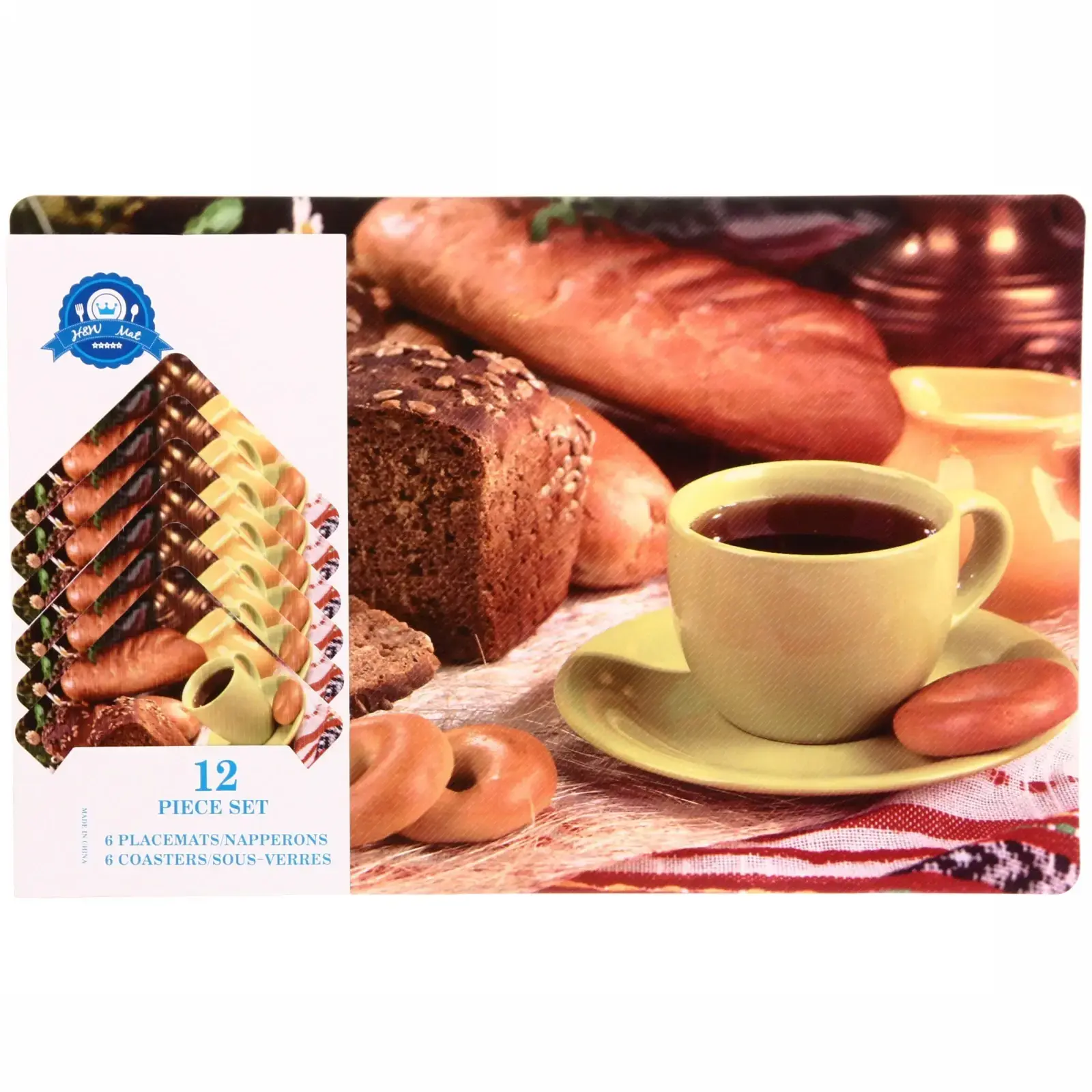 Салфетка на стол «Завтрак», 43x28см, набор 6+6шт, ПВХ, водоотталкивающие