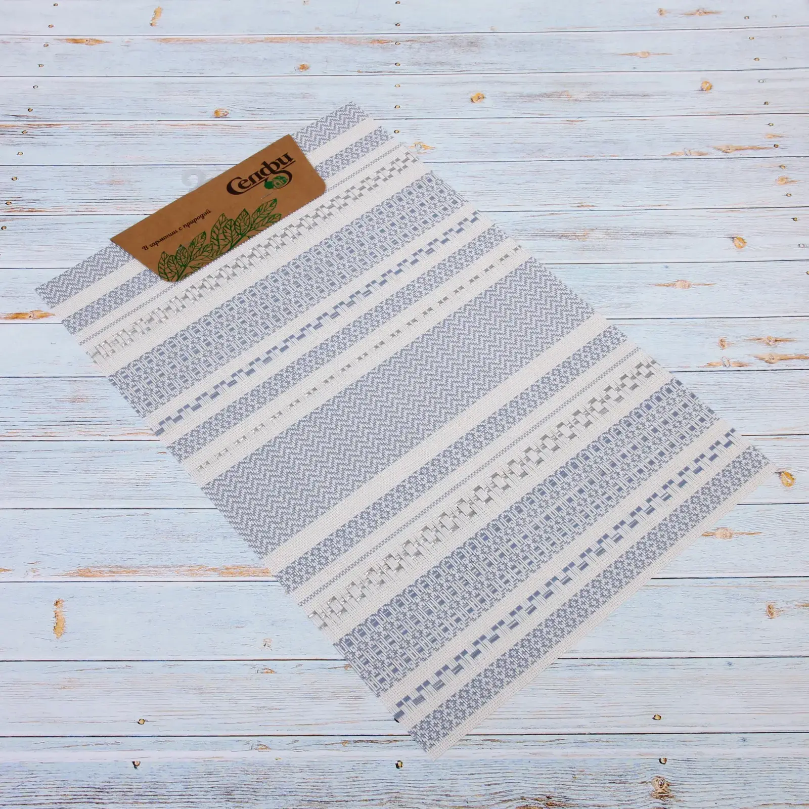 Создайте уютную атмосферу на вашем столе с помощью плетеной салфетки «Полосы» в синих тонах. Эта салфетка не только украсит ваш интерьер, но и защитит поверхность стола от загрязнений и повреждений. Изготовленная из качественного ПВХ, она легко очищается и устойчива к влаге, что делает её идеальным выбором для повседневного использования.