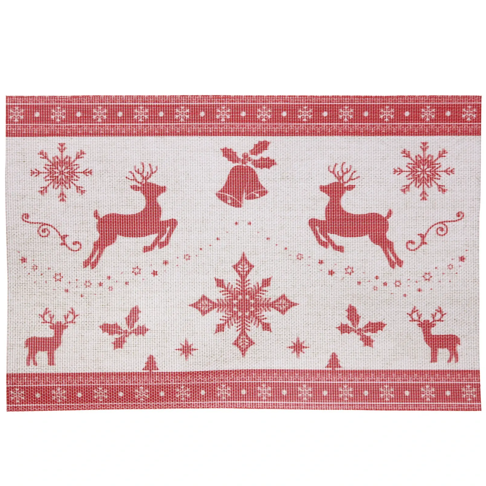 Салфетка имеет белый фон с красными узорами, что делает ее стильным акцентом на любом столе. Она выполнена из ПВХ, что обеспечивает защиту от влаги и легкость в уходе. Размер 45х30 см позволяет использовать ее как в одиночном варианте, так и в сочетании с другими элементами сервировки. Подарите себе и своим близким атмосферу праздника с салфеткой «Сказка»!