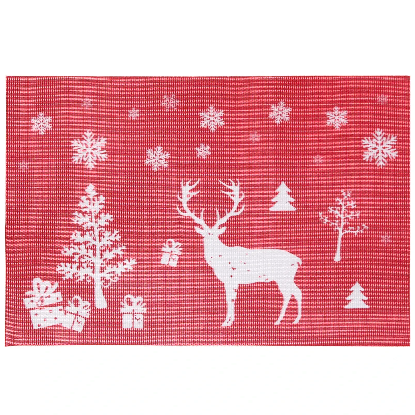 Салфетка имеет прямоугольную форму и размеры 45х30см, что делает её универсальной для различных типов столов. Материал ПВХ обеспечивает легкость в уходе и долговечность, а яркий красный цвет с белыми узорами добавляет праздничного настроения. Не упустите возможность сделать ваш новогодний стол по-настоящему волшебным с салфеткой «Сказочный олень»!