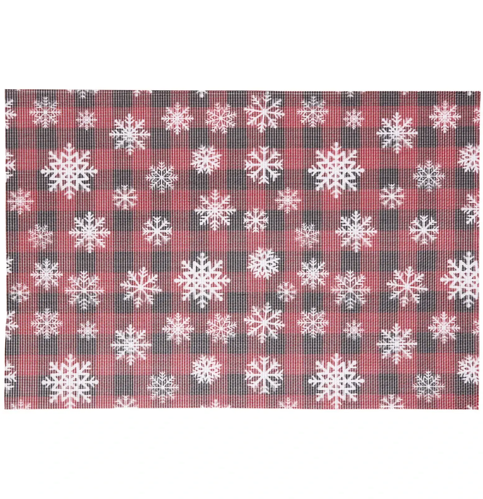 Салфетка имеет размеры 45х30 см, что делает её универсальной для различных столов. Она отлично подходит для сервировки как праздничного, так и повседневного стола. Благодаря яркому дизайну с белыми снежинками на красном фоне, она привлечет внимание ваших гостей и создаст праздничное настроение.