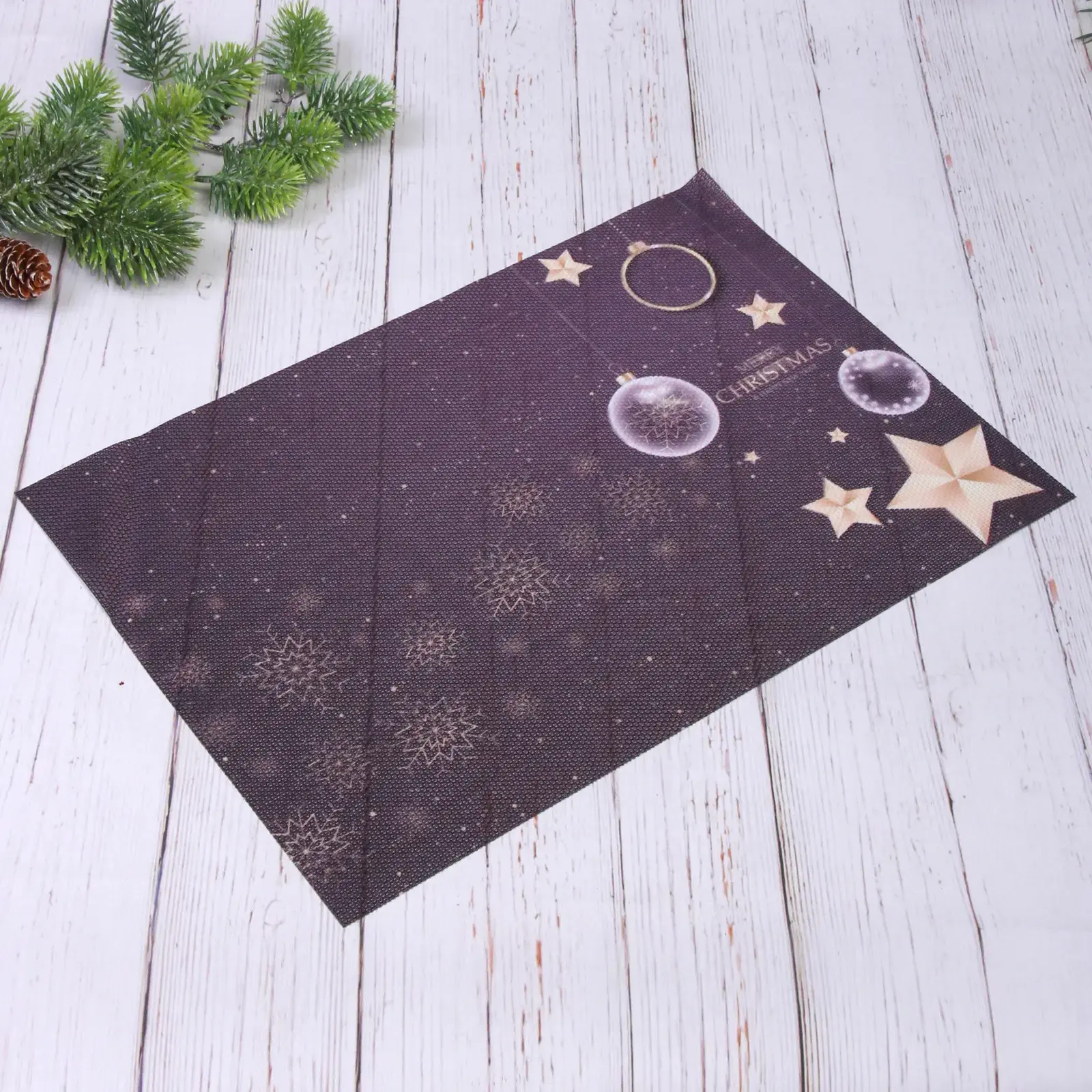 Салфетка имеет прямоугольную форму и размеры 45х30см, что делает ее универсальной для различных типов столов. Материал ПВХ обеспечивает защиту от загрязнений и легкость в уходе — достаточно протереть ее влажной тряпкой, чтобы вернуть первоначальный вид. Праздничный дизайн с изображениями снежинок и звезд добавляет волшебства в ваш новогодний вечер.