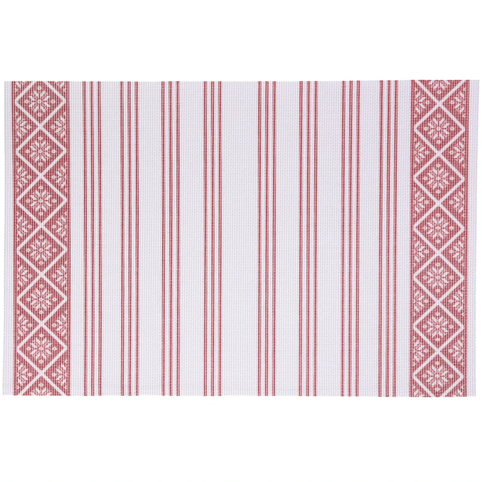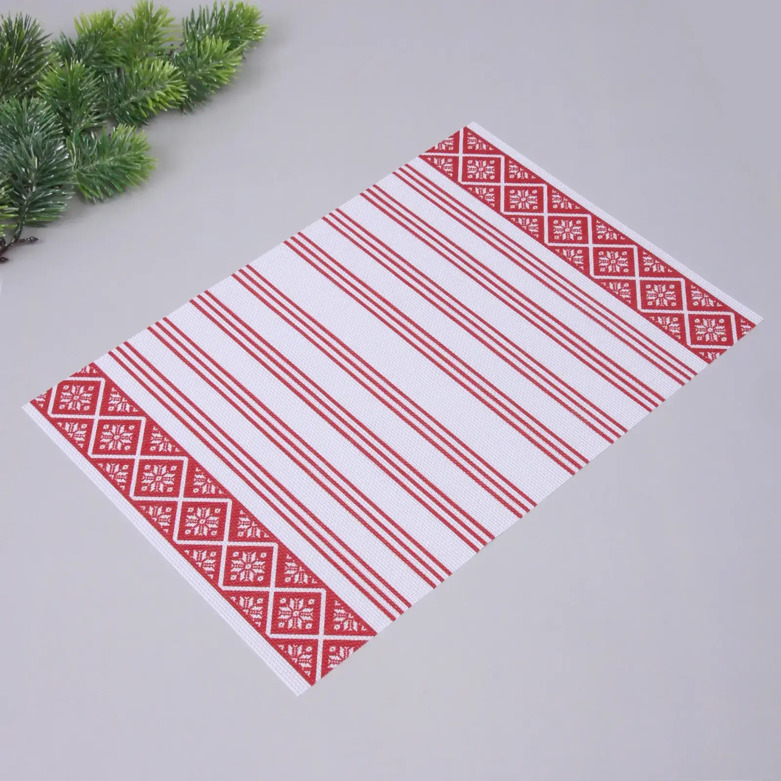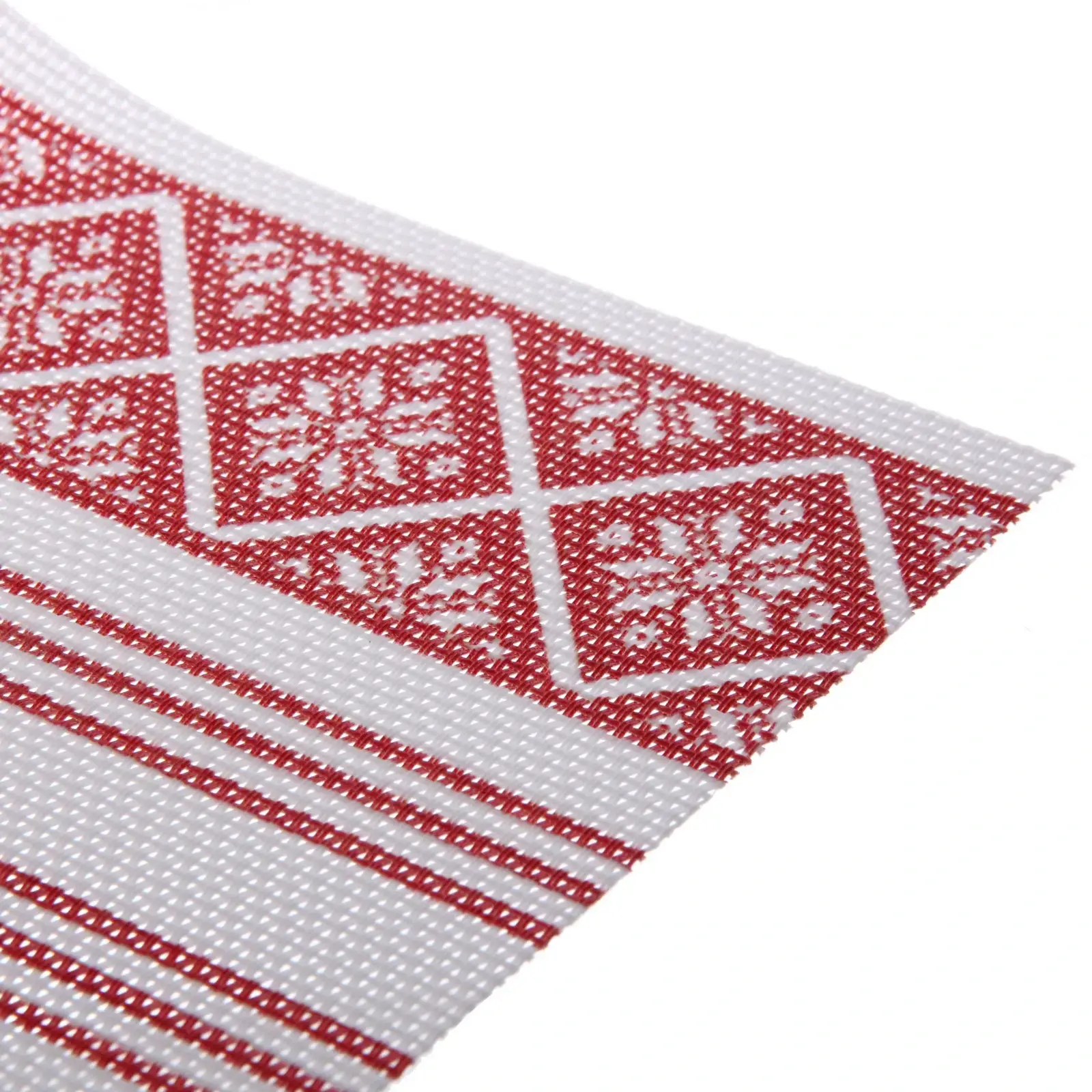 Размер салфетки составляет 45х30см, что делает её универсальной для различных типов столов. Белый фон с красными полосами и узорами придаёт изделию стильный и современный вид. Салфетка легко складывается и хранится, что делает её удобной в использовании. Не упустите возможность сделать ваш новогодний стол по-настоящему особенным с этой яркой и практичной салфеткой!