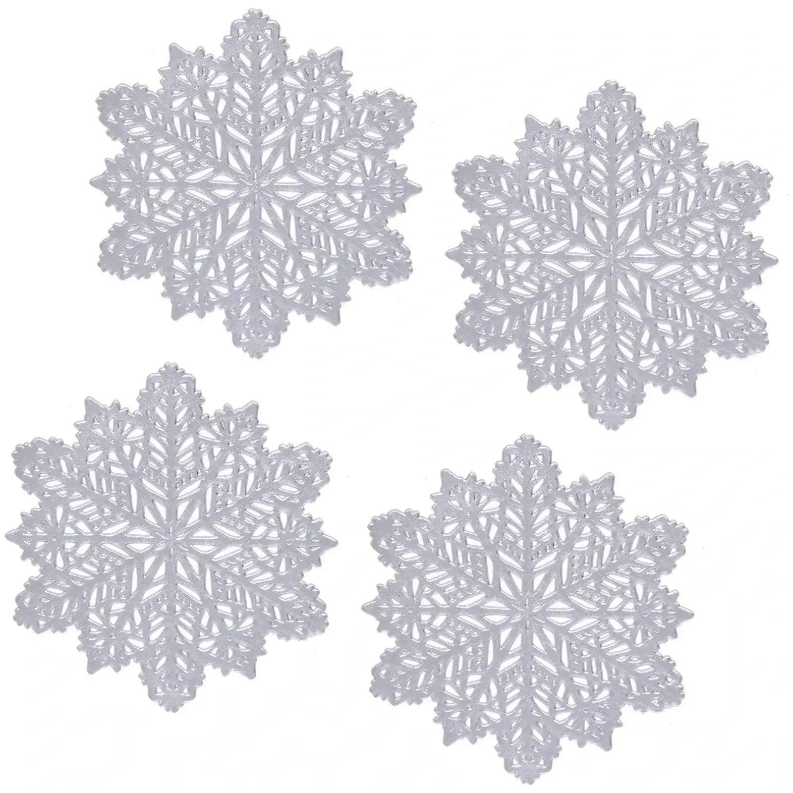 Превратите обычное чаепитие в волшебный зимний ритуал с комплектом из 4 стильных подставок под кружки в форме снежинок. Их элегантный дизайн и серебристый оттенок добавят праздничного блеска вашему столу.
