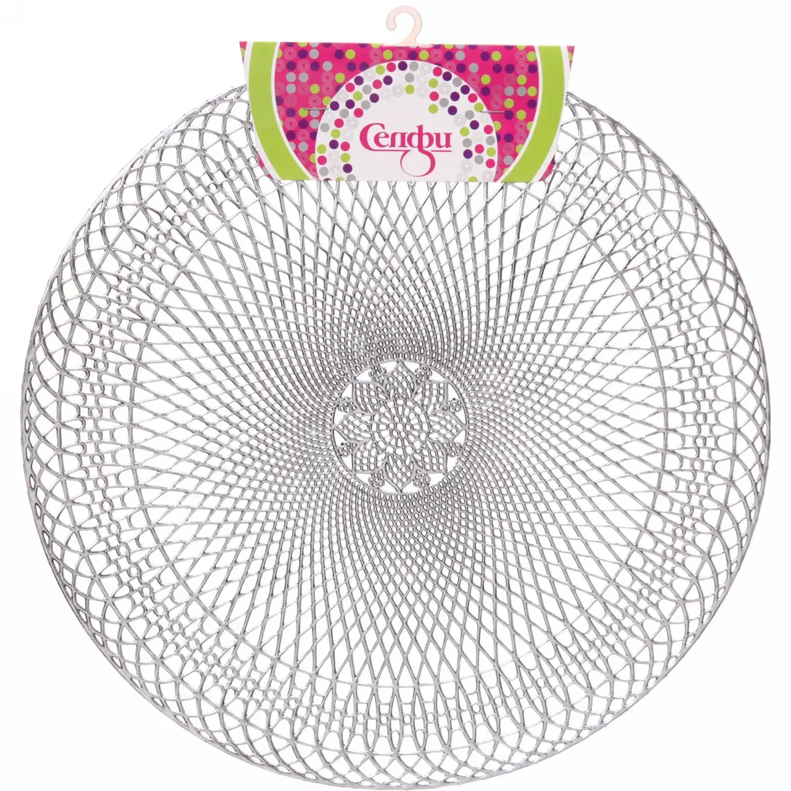 Размер салфетки составляет 38 см в диаметре, что делает её универсальной для большинства столов. Серебристый цвет добавляет элегантности, а плетеная текстура создает интересный визуальный эффект. Салфетка «Кружево» станет не только функциональным, но и стильным элементом вашего интерьера.