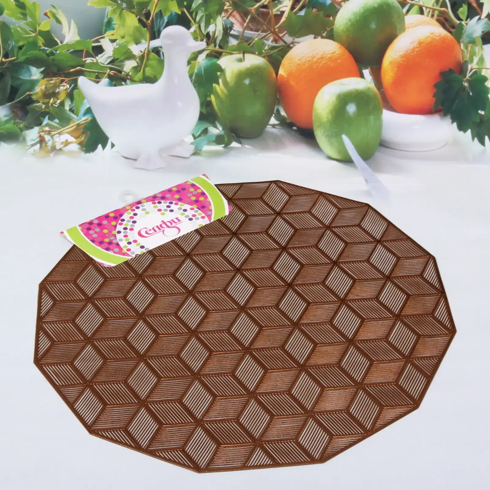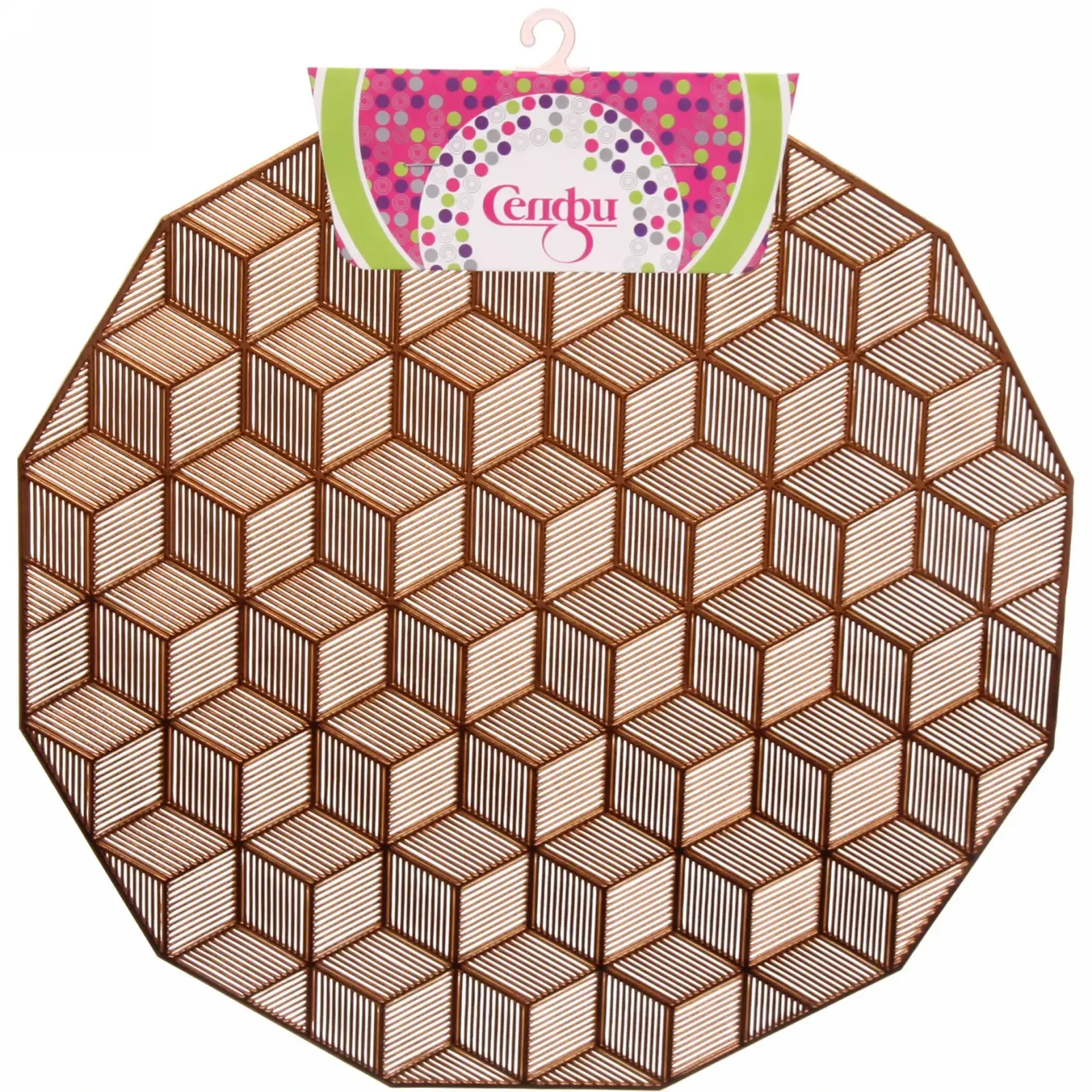 Салфетка плетеная 'Кубики' 38см, терракотовый цвет, ПВХ, стильный узор