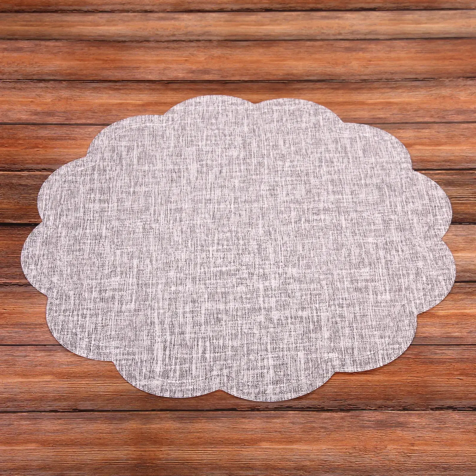 Салфетка имеет округлую форму с волнистым краем, что придаёт ей уникальный и стильный вид. Материал, из которого она изготовлена, легко моется и не теряет своего внешнего вида со временем. Размер 38 см делает её универсальной для использования в различных ситуациях.