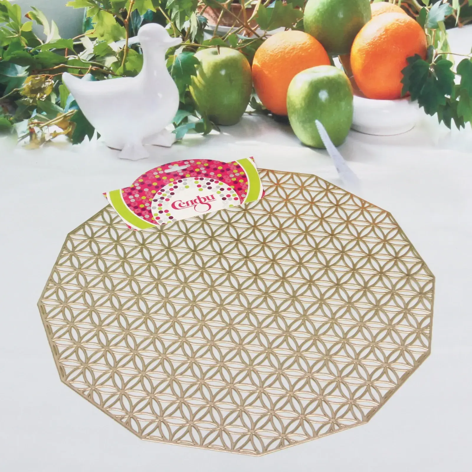 Салфетка плетеная 38см «Орнамент» в золотистом цвете — это идеальное решение для создания уютной и стильной атмосферы на вашем столе. Она не только украсит ваш интерьер, но и добавит нотку изысканности в каждую сервировку. Изготовленная из качественного ПВХ, эта салфетка отличается прочностью и долговечностью, что делает её отличным выбором для повседневного использования.