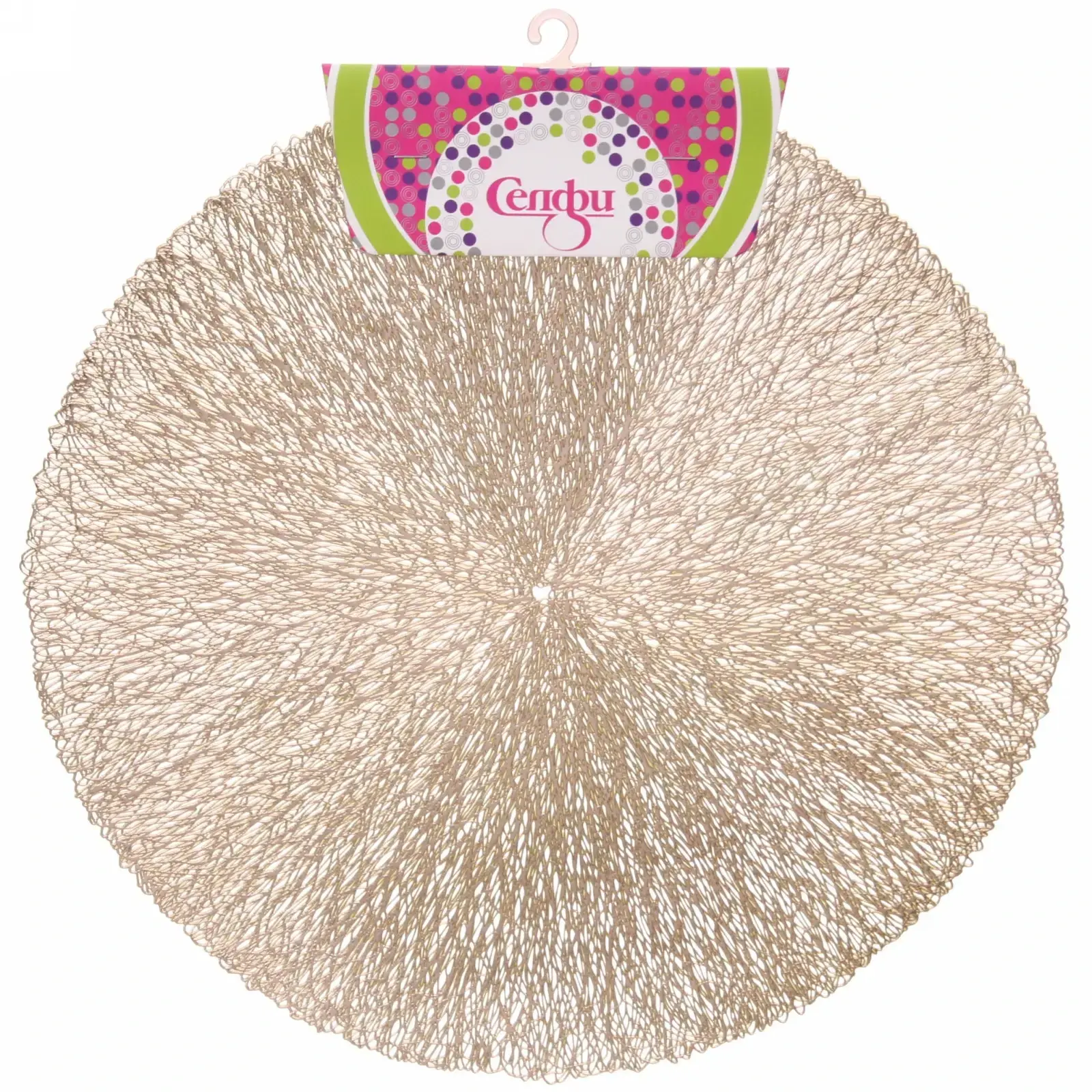Салфетка имеет диаметр 38 см, что делает ее идеальной для размещения под тарелками, чашками или другими предметами сервировки. Легкий и прочный материал обеспечивает долговечность, а стильный дизайн делает ее незаменимым аксессуаром для вашего стола.