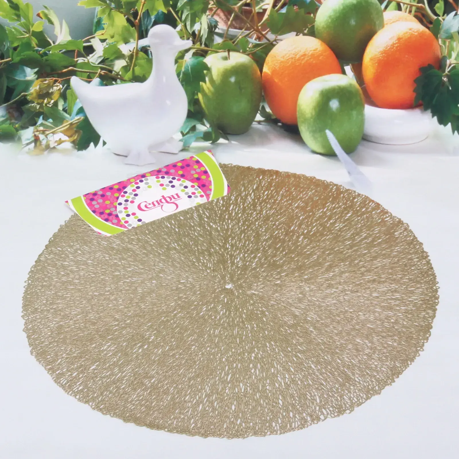 Выбирая нашу плетеную салфетку, вы получаете не только красивый, но и функциональный элемент для сервировки. Изготовленная из качественного ПВХ, она устойчива к повреждениям и легко моется. Золотистый цвет добавляет изысканности, а рельефная текстура создает эффект объема, что делает вашу сервировку более привлекательной.